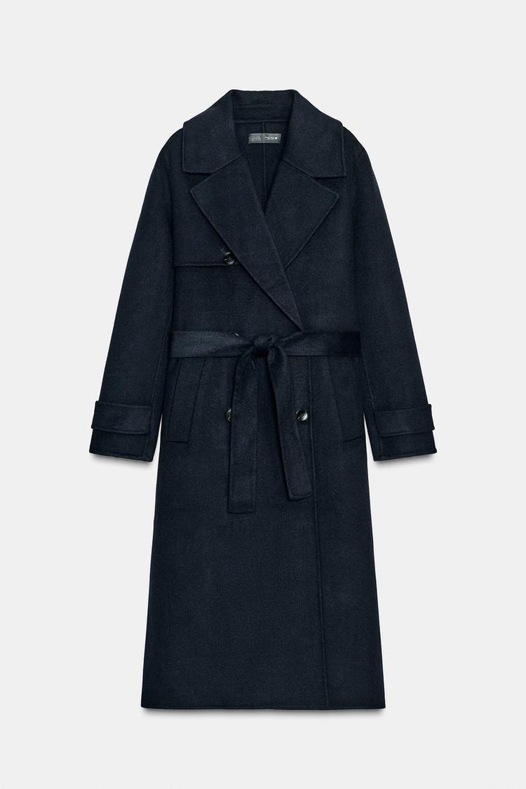 ZARA ПАЛЬТО ИЗ ШЕРСТИ С ПОЯСОМ, МОРСКОЙ СИНИЙ