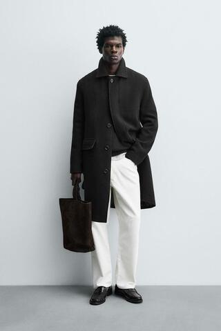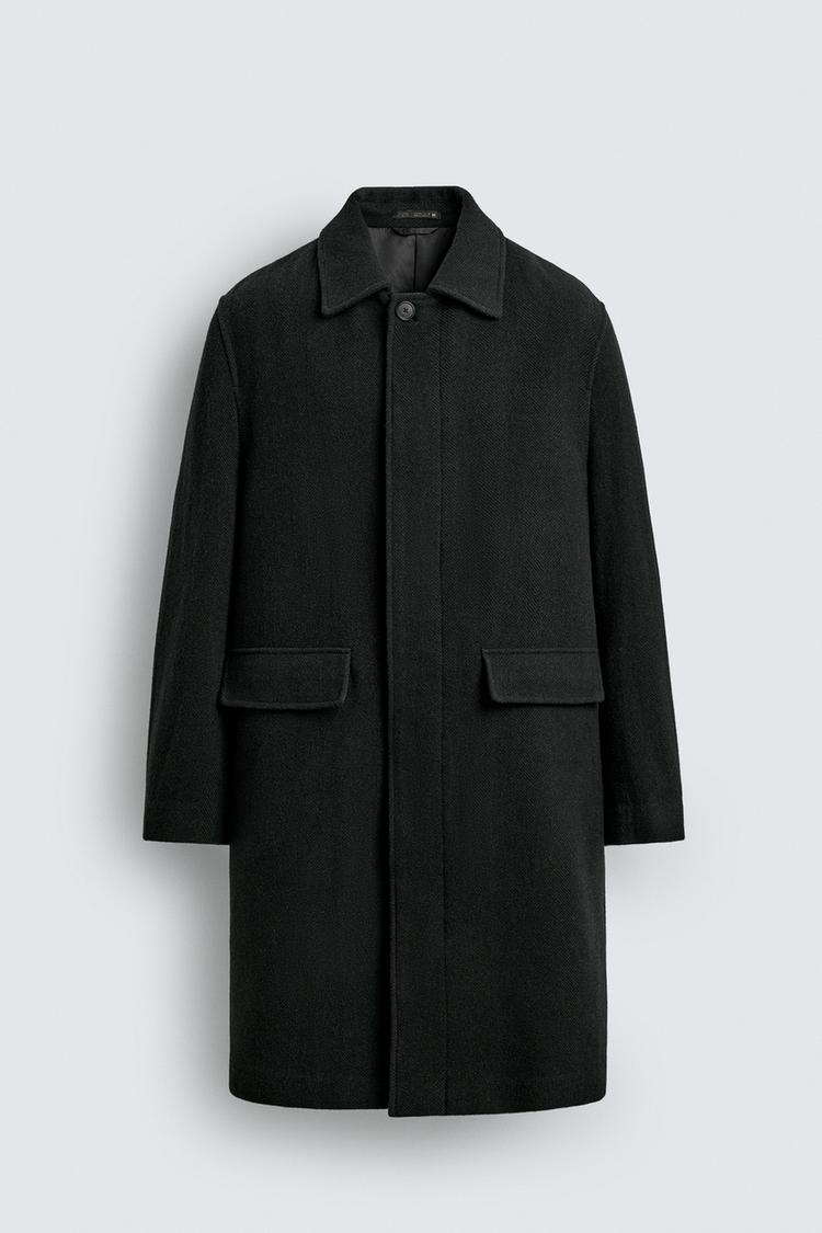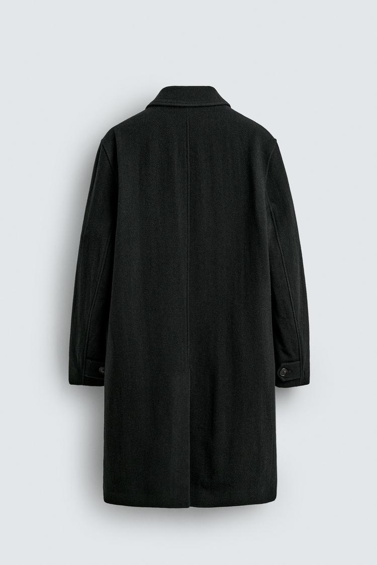 ZARA ПАЛЬТО ИЗ ШЕРСТИ С УЗОРОМ В ЕЛОЧКУ, ТЕМНЫЙ ХАКИ