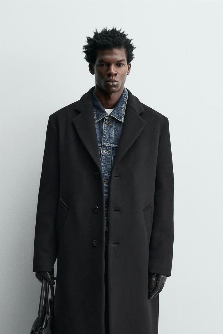 ZARA ПАЛЬТО ИЗ СМЕСОВОЙ ШЕРСТИ MANTECO®, ЧЕРНЫЙ