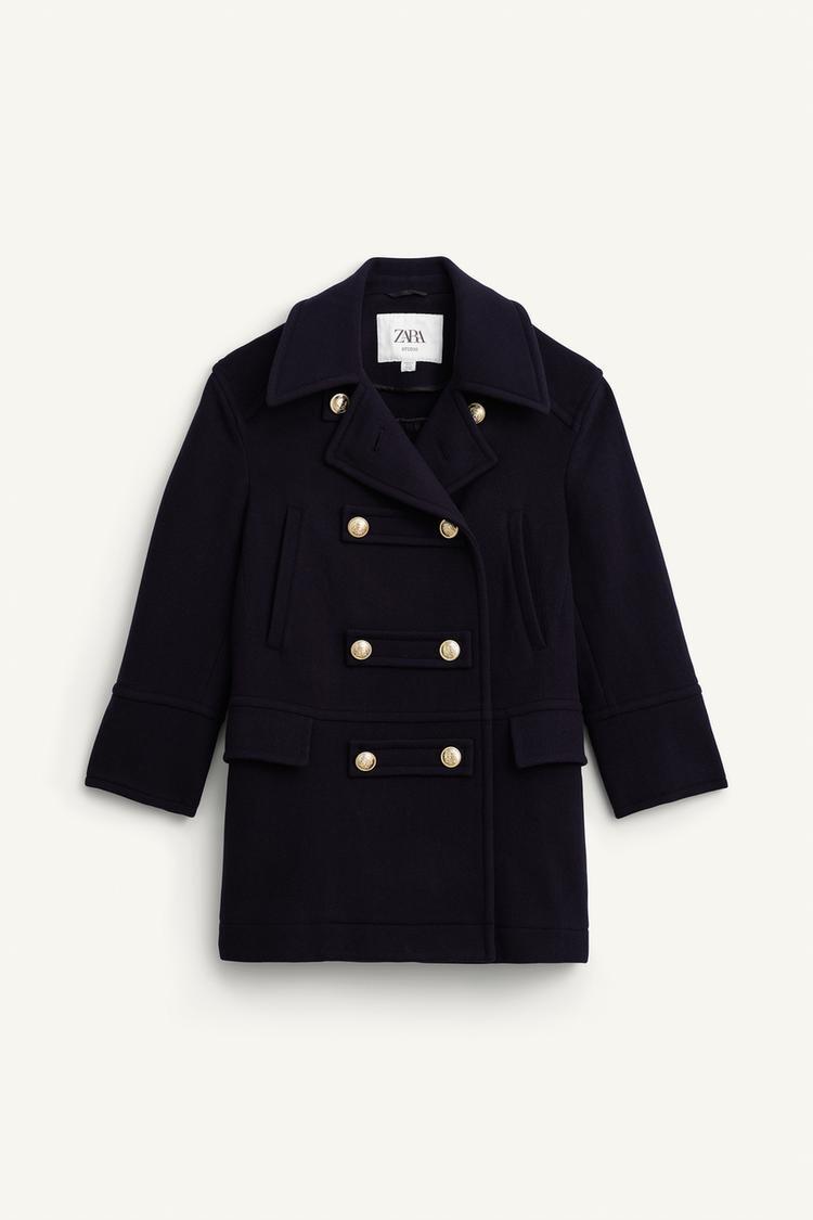 ZARA ПАЛЬТО ИЗ СМЕСОВОЙ ШЕРСТИ, ТЕМНО-СИНИЙ