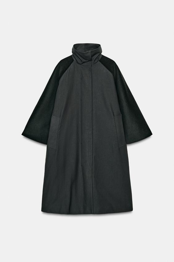 ZARA ПАЛЬТО ИЗ СМЕСОВОЙ ШЕРСТИ — ZW COLLECTION LIMITED EDITION, МОРСКОЙ ТЕМНО-СИНИЙ