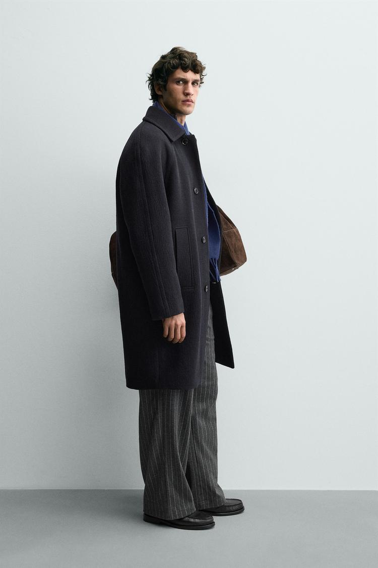ZARA ПАЛЬТО ИЗ СТРУКТУРНОЙ ШЕРСТИ, МОРСКОЙ СИНИЙ