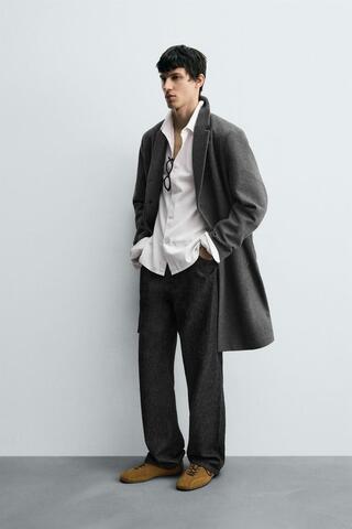 ZARA ПАЛЬТО КЛАССИЧЕСКОГО КРОЯ ИЗ ШЕРСТИ, СЕРЫЙ