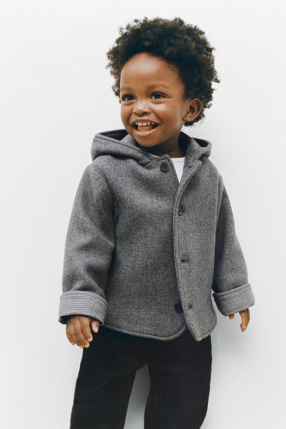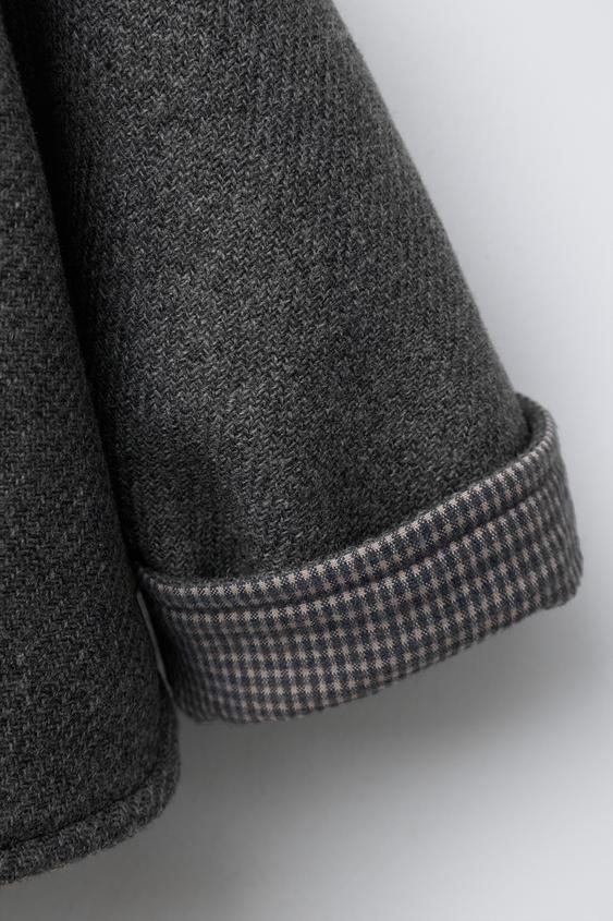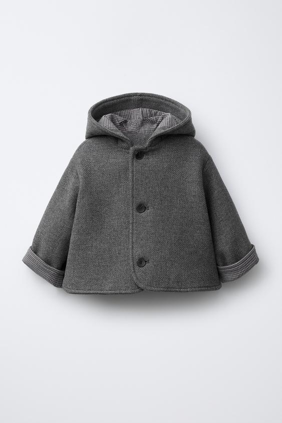 ZARA ПАЛЬТО МАНТИКО С КАПЮШОНОМ, ТЕМНО-СЕРЫЙ