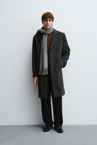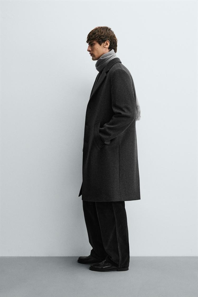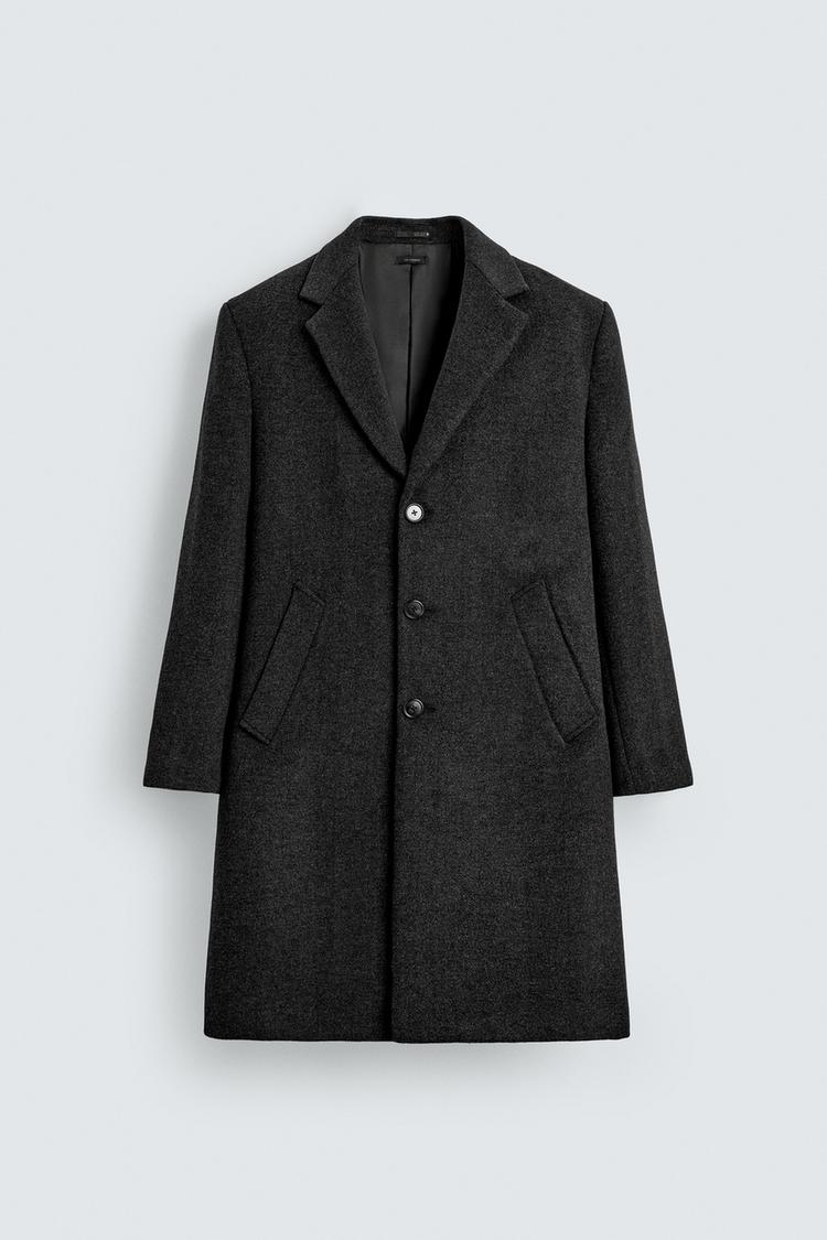 ZARA ПАЛЬТО REGULAR FIT ИЗ ШЕРСТИ, АНТРАЦИТОВО-СЕРЫЙ