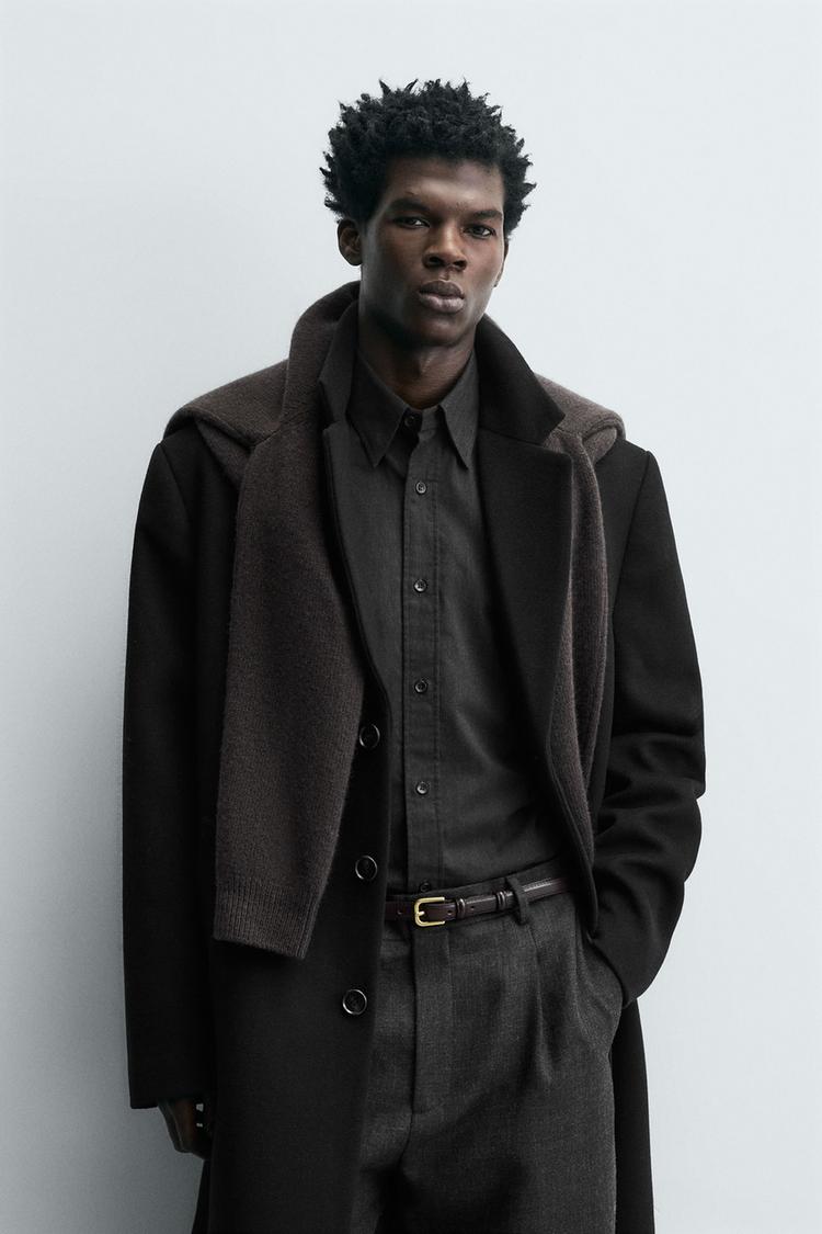 ZARA ПАЛЬТО REGULAR FIT ИЗ ШЕРСТИ, ЧЕРНЫЙ