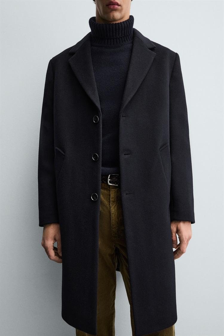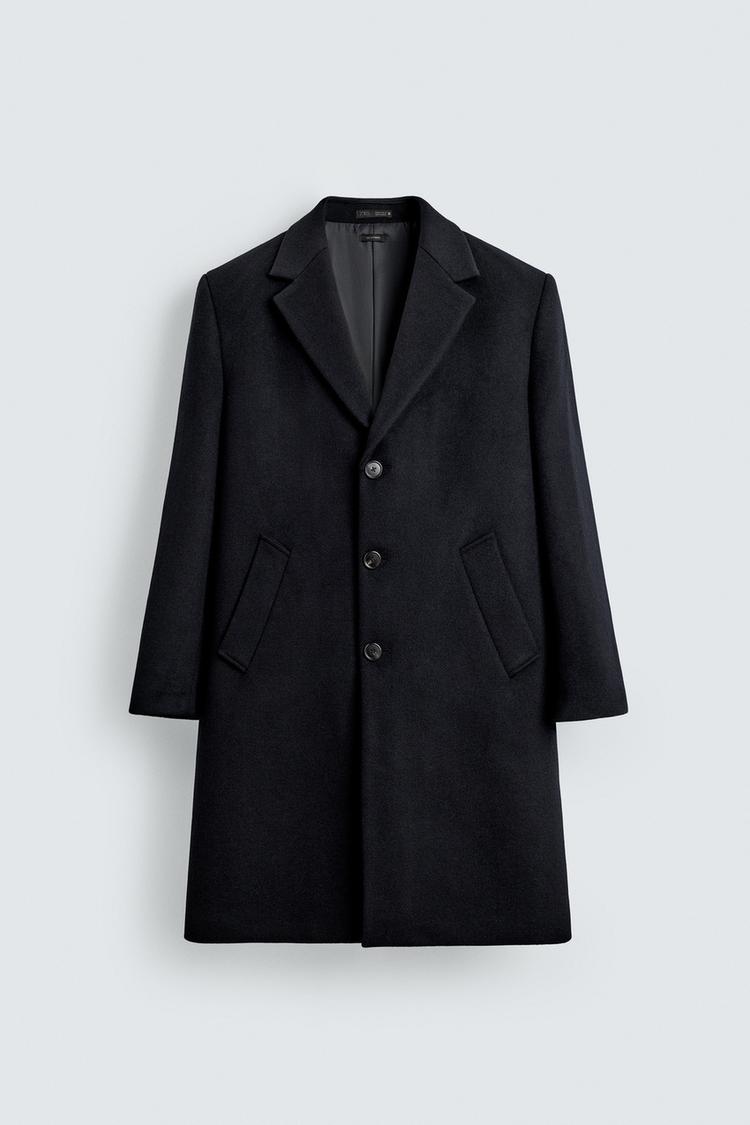 ZARA ПАЛЬТО REGULAR FIT ИЗ ШЕРСТИ, МОРСКОЙ СИНИЙ