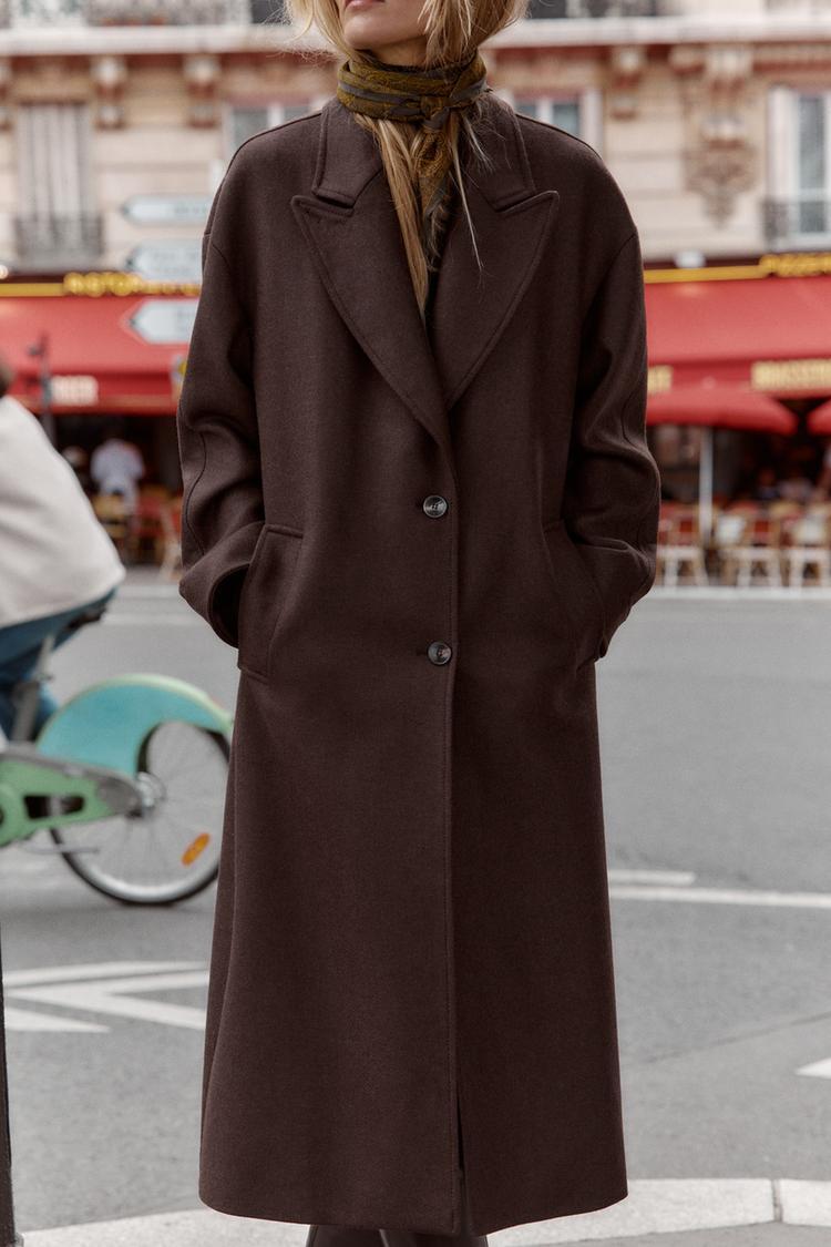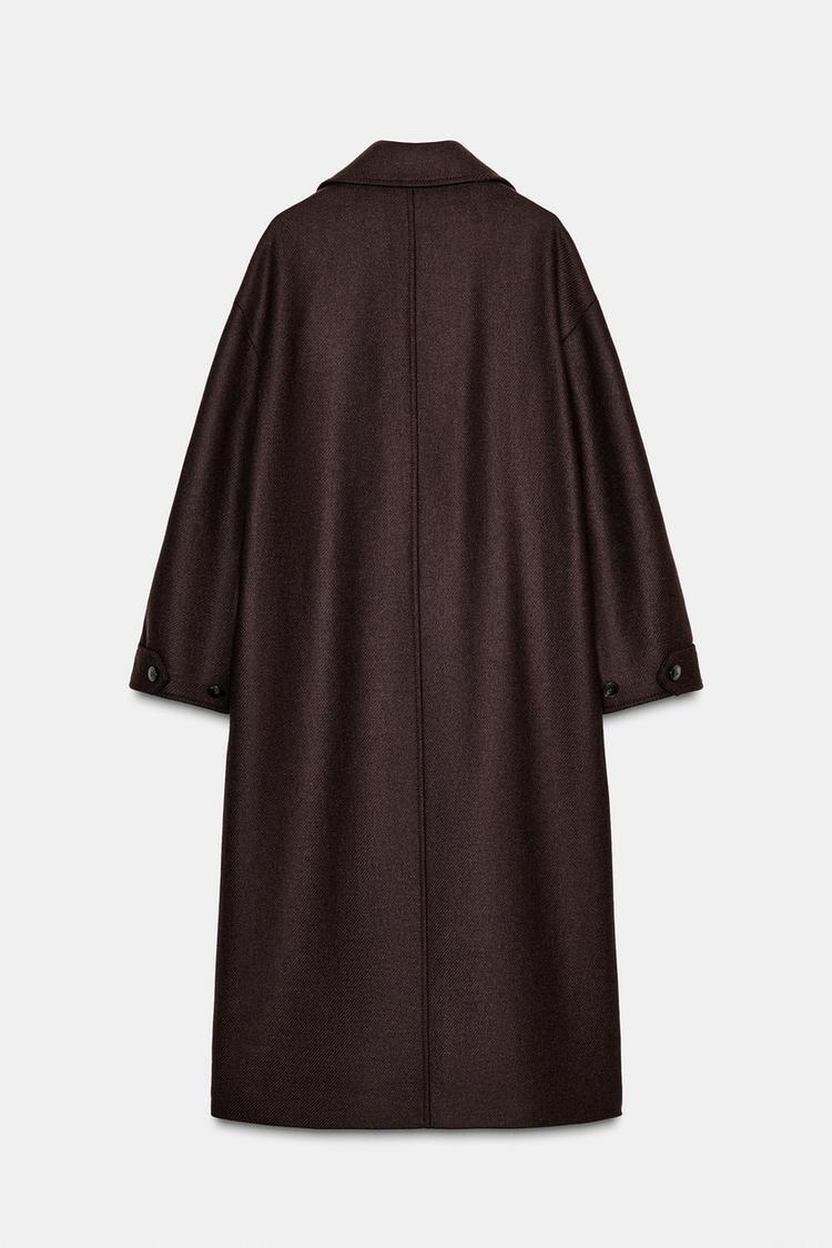 ZARA ПАЛЬТО С КОМБИНИРОВАННЫМ ВОРОТНИКОМ ИЗ ИСКУССТВЕННОЙ КОЖИ, КОРИЧНЕВЫЙ