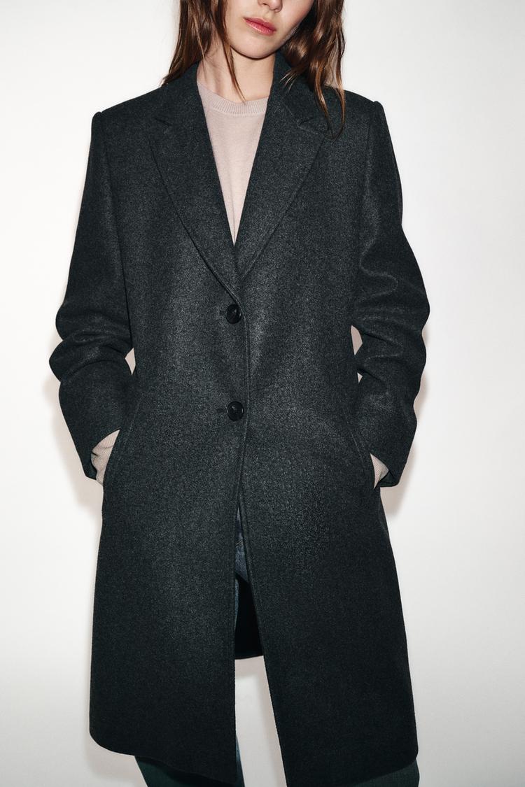 ZARA ПАЛЬТО С ПОДПЛЕЧНИКАМИ ИЗ МЯГКОЙ ТКАНИ, СЕРЫЙ МЕЛАНЖ