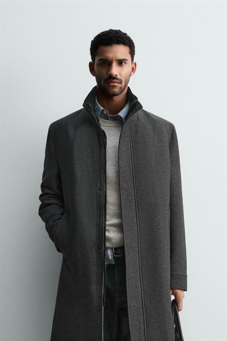 ZARA ПАЛЬТО СО СЪЕМНЫМ ВОРОТНИКОМ, АНТРАЦИТОВО-СЕРЫЙ