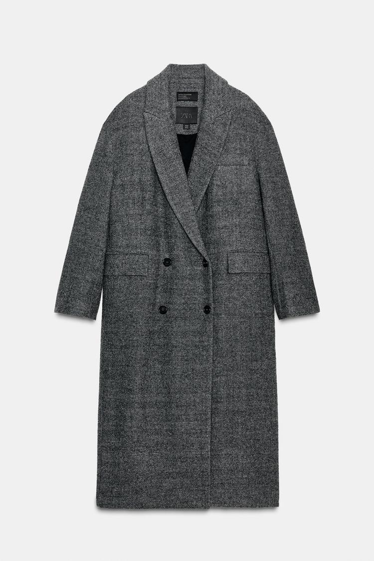 ZARA ПАЛЬТО В КЛЕТКУ ИЗ 100% ШЕРСТИ — ZW COLLECTION LIMITED EDITION, МЯГКИЙ СЕРЫЙ
