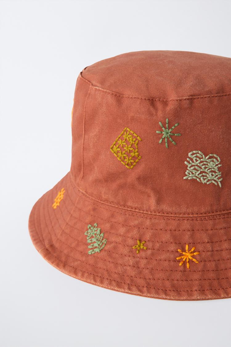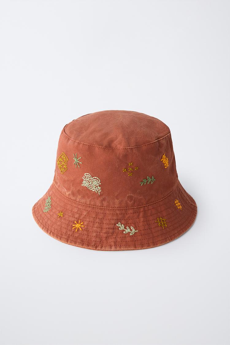 ZARA ПАНАМА С ВЫШИВКОЙ, ОРАНЖЕВЫЙ
