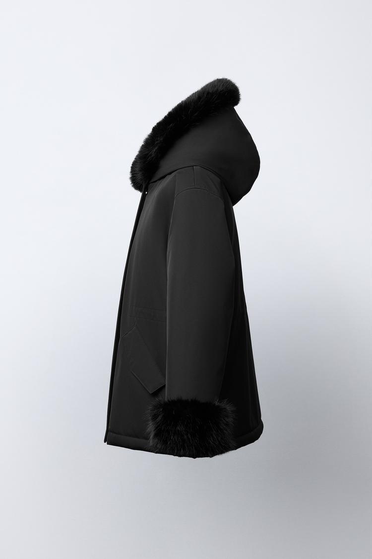 ZARA ПАРКА С КАПЮШОНОМ И ИСКУССТВЕННЫМ МЕХОМ, ЧЕРНЫЙ