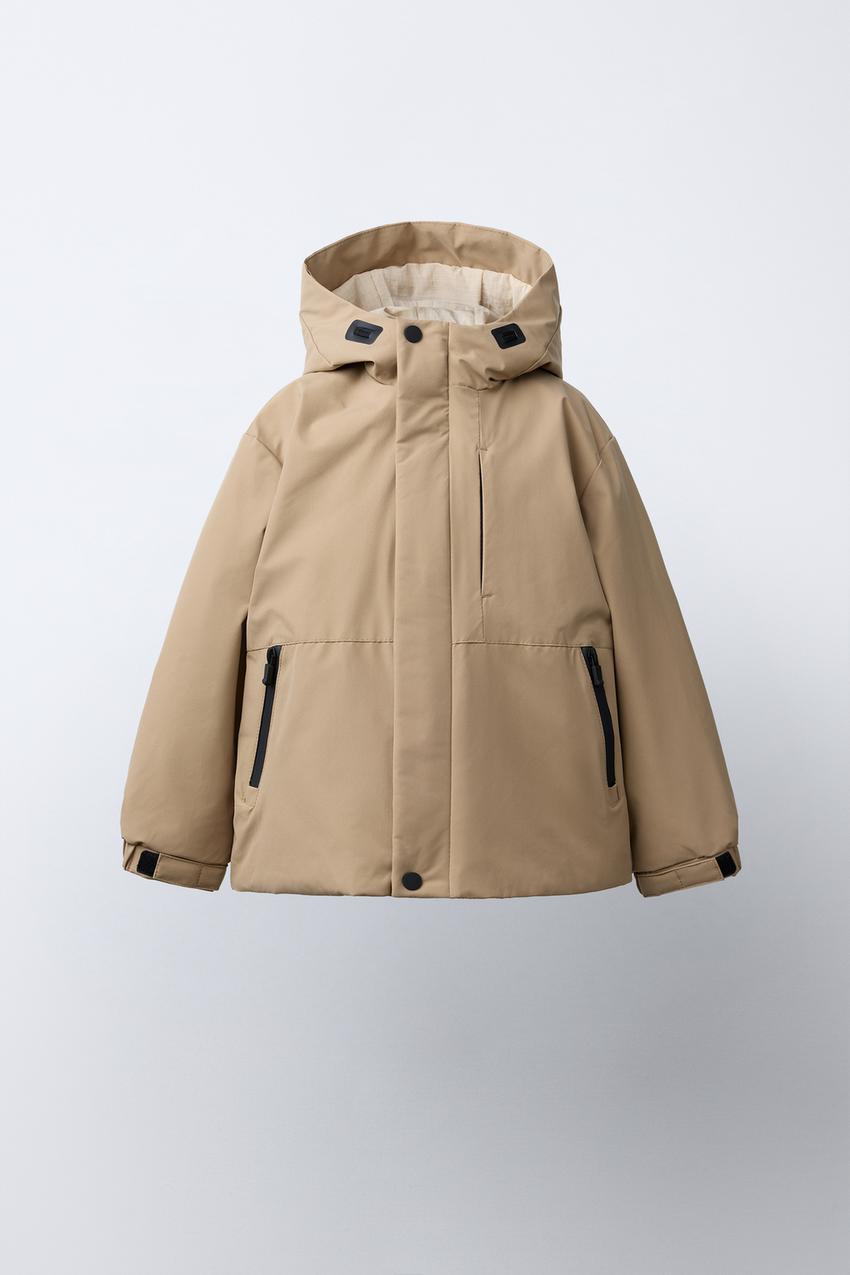 ZARA ПАРКА С КОНТРАСТНЫМИ МОЛНИЯМИ WATER-REPELLENT, СВЕТЛО-БЕЖЕВЫЙ