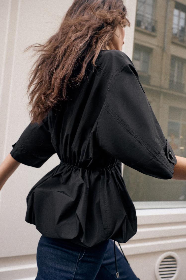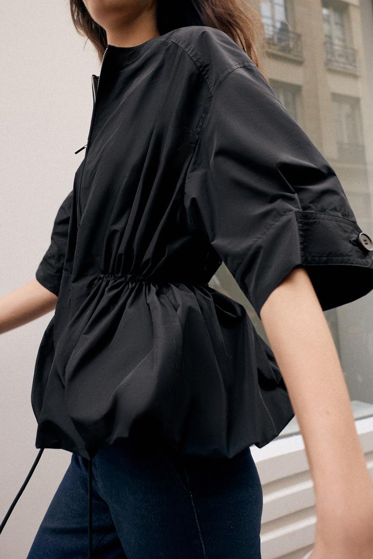 ZARA ПАРКА С КОРОТКИМИ РУКАВАМИ И ОБЪЕМНЫМ ПОДОЛОМ, ЧЕРНЫЙ