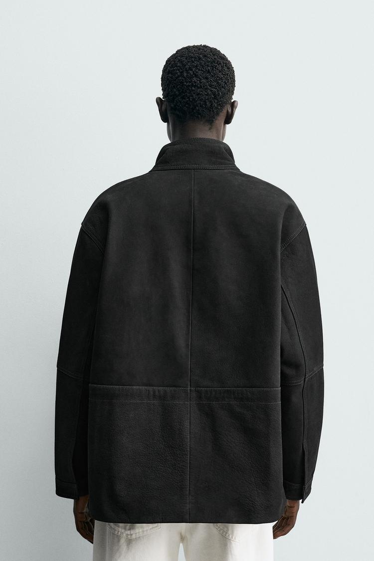 ZARA ПАРКА СВОБОДНОГО КРОЯ ИЗ КОЖИ, АНТРАЦИТОВО-СЕРЫЙ