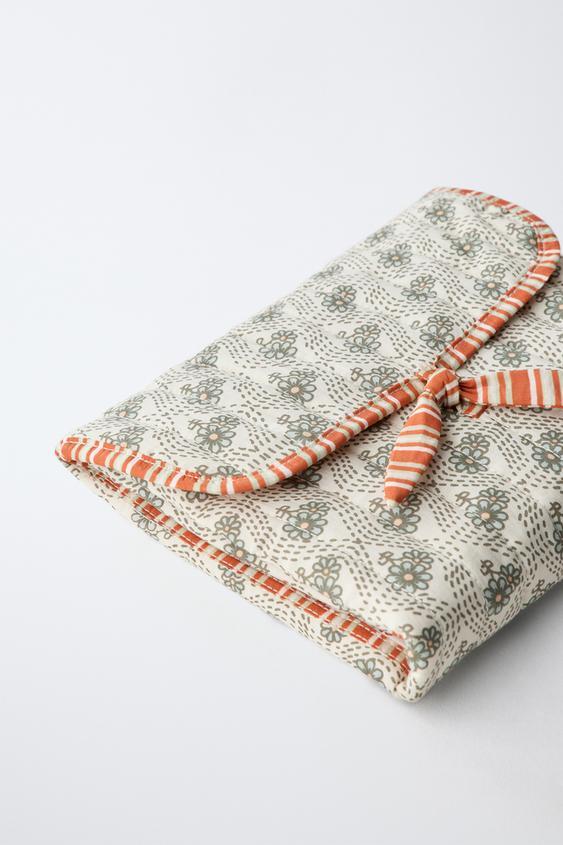 ZARA ПЕЛЕНАЛЬНЫЙ КОВРИК ДЛЯ МАМ С ЦВЕТОЧНЫМ ПРИНТОМ, ЭКРЮ