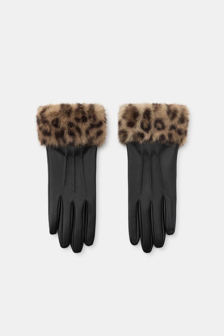 ZARA ПЕРЧАТКИ ИЗ ИСКУССТВЕННОЙ КОЖИ С АНИМАЛИСТИЧЕСКИМ ПРИНТОМ, КОРИЧНЕВЫЙ