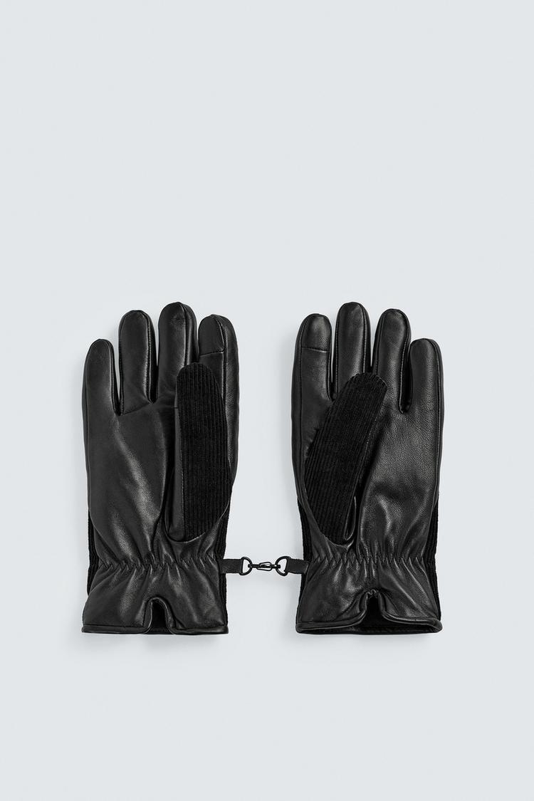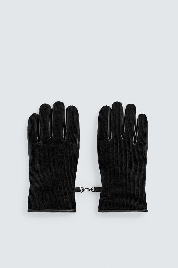 ZARA ПЕРЧАТКИ КОМБИНИРОВАННЫЕ КОЖА/ВЕЛЬВЕТ, ЧЕРНЫЙ