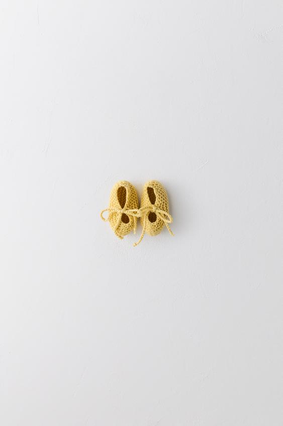 ZARA ПИНЕТКИ ИЗ ХЛОПЧАТОБУМАЖНОЙ ВЯЗКИ, ЖЕЛТЫЙ