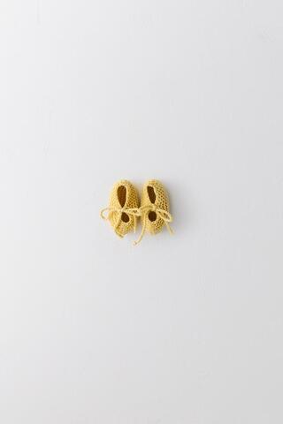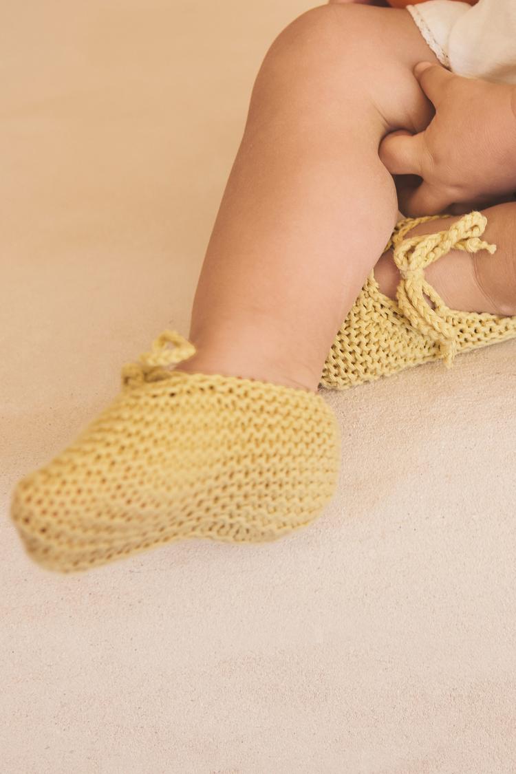 Вязаные пинетки с регулируемой шнуровкой. Изготовлены из 100% хлопка.
