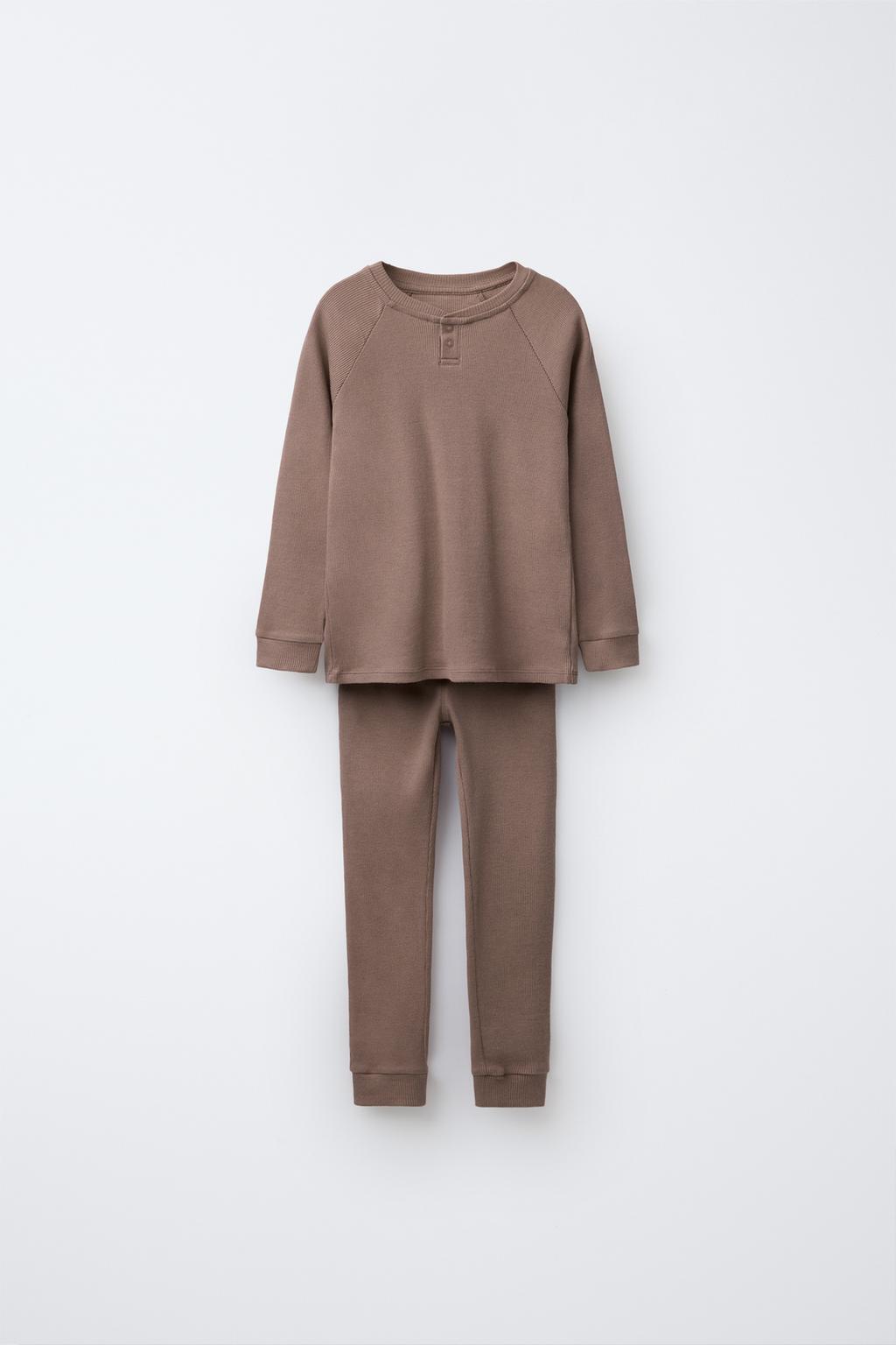 ZARA ПИЖАМА ИЗ СМЕСОВОЙ МЕРИНОСОВОЙ ШЕРСТИ, КОРИЧНЕВЫЙ