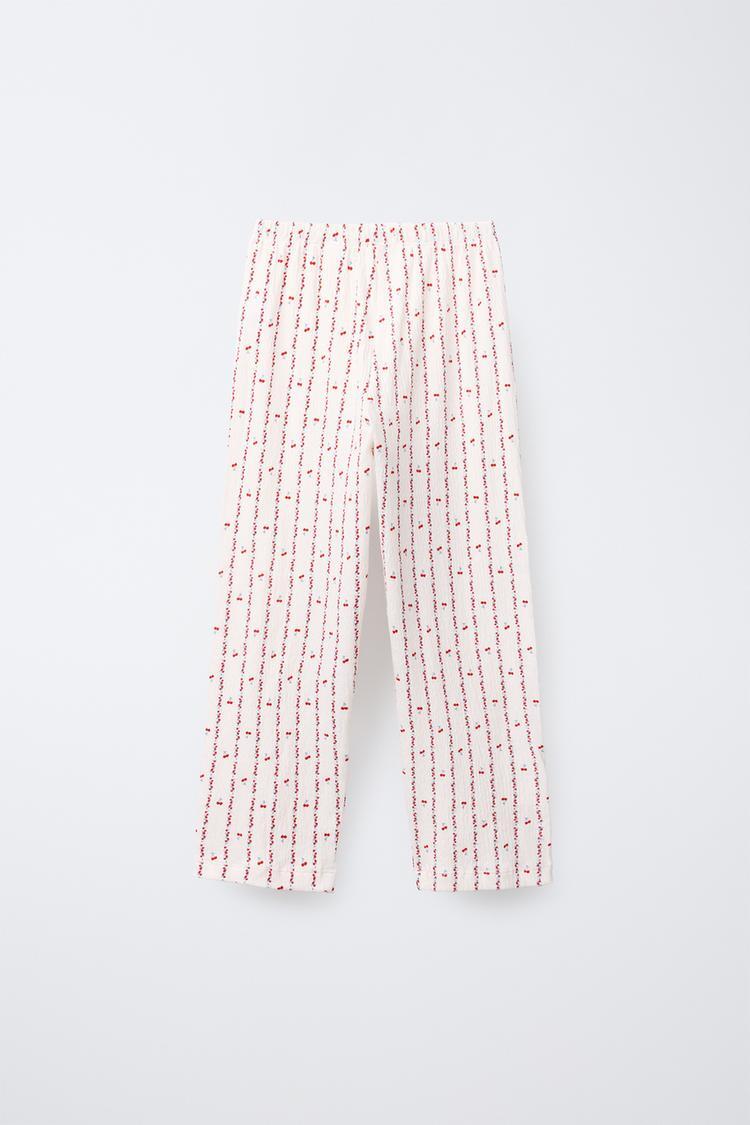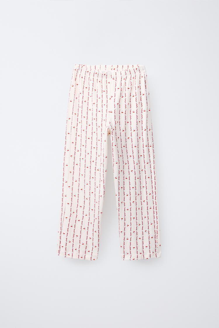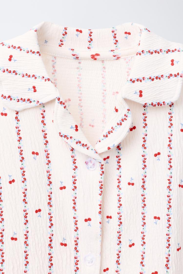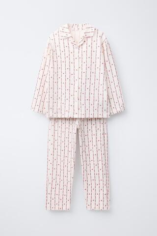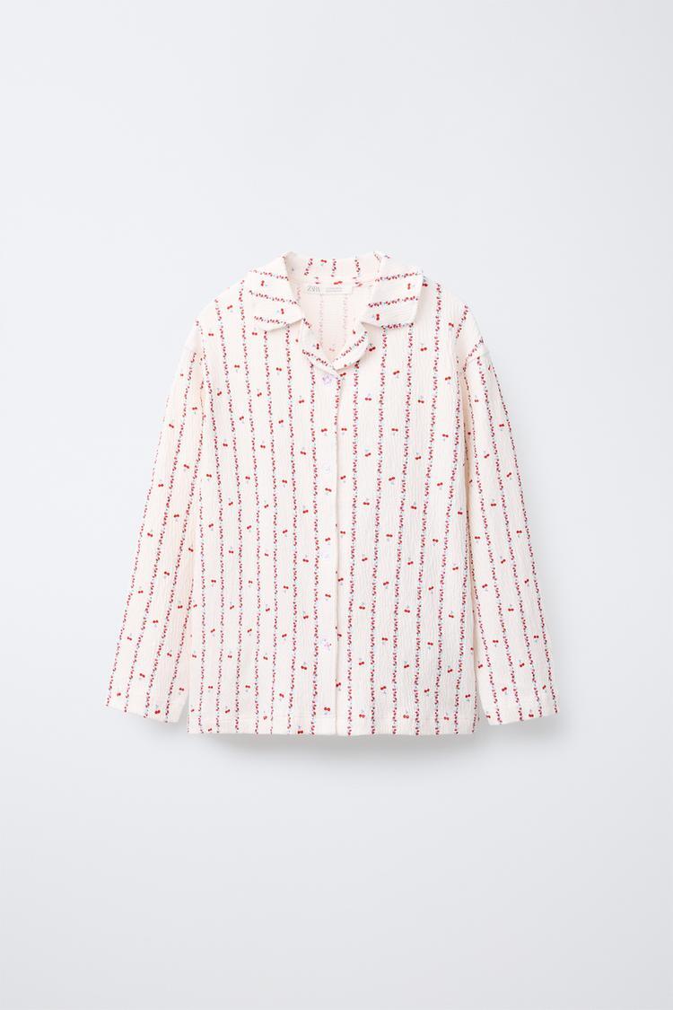 ZARA ПИЖАМА: РУБАШКА И БРЮКИ С ПРИНТОМ «ВИШНИ И ЦВЕТЫ», ЭКРЮ