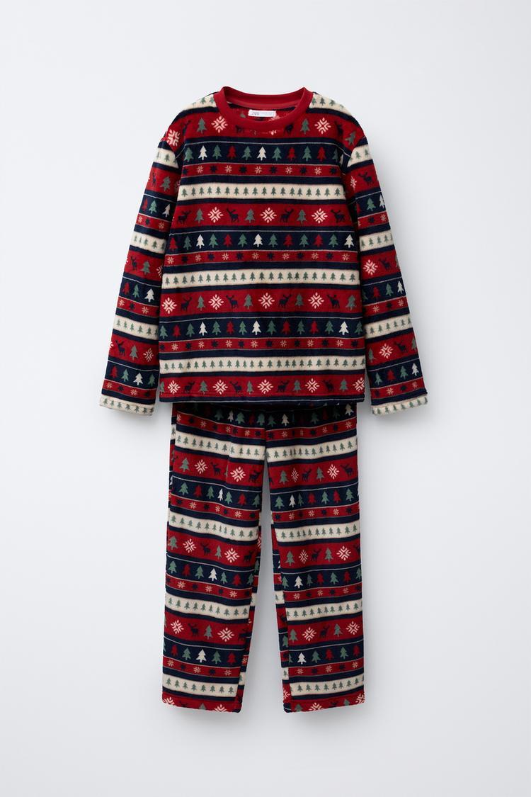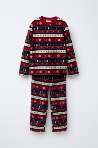 ZARA ПИЖАМА С МЯГКОЙ ТЕКСТУРОЙ И ПРИНТОМ «ДЕРЕВЬЯ», КРАСНЫЙ