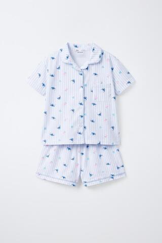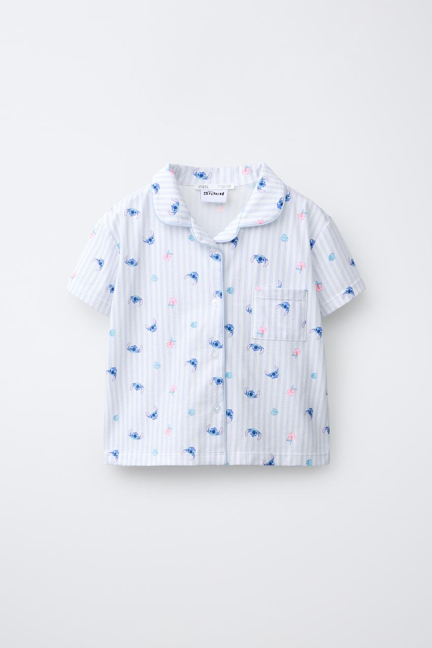 Пижама из двух предметов. Рубашка с отложным воротником и короткими рукавами. Нагрудный накладной карман. Шорты с эластичным поясом. Принт LILO & STITCH © DISNEY.