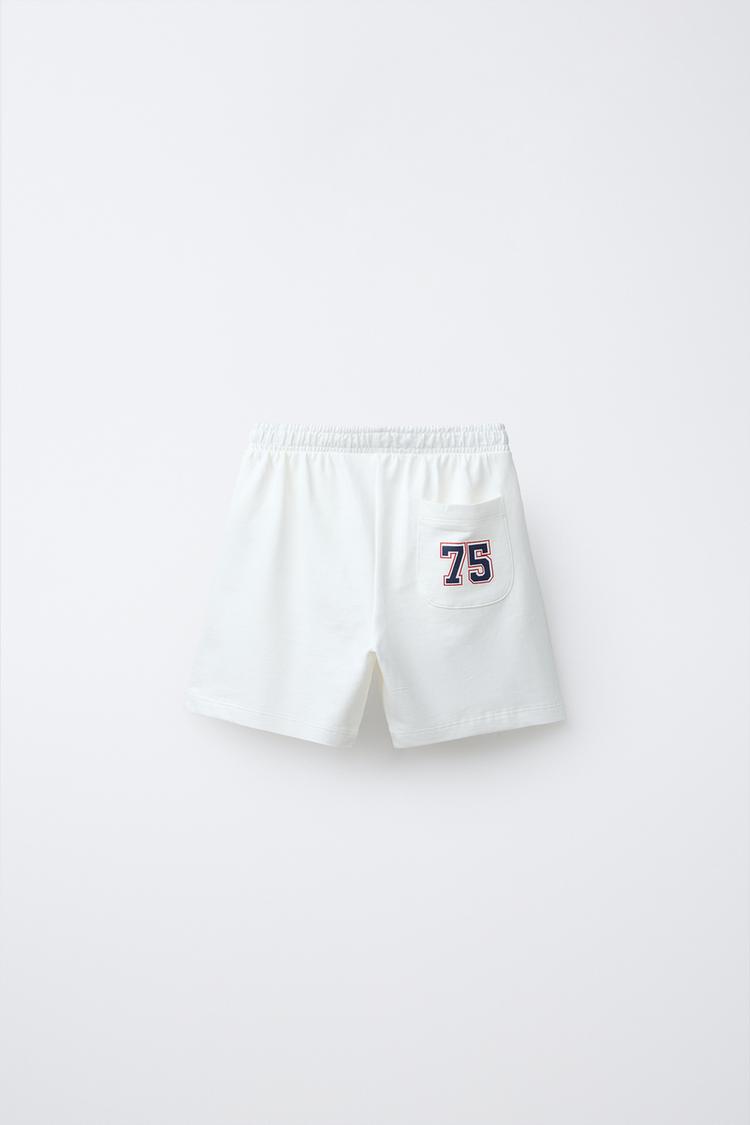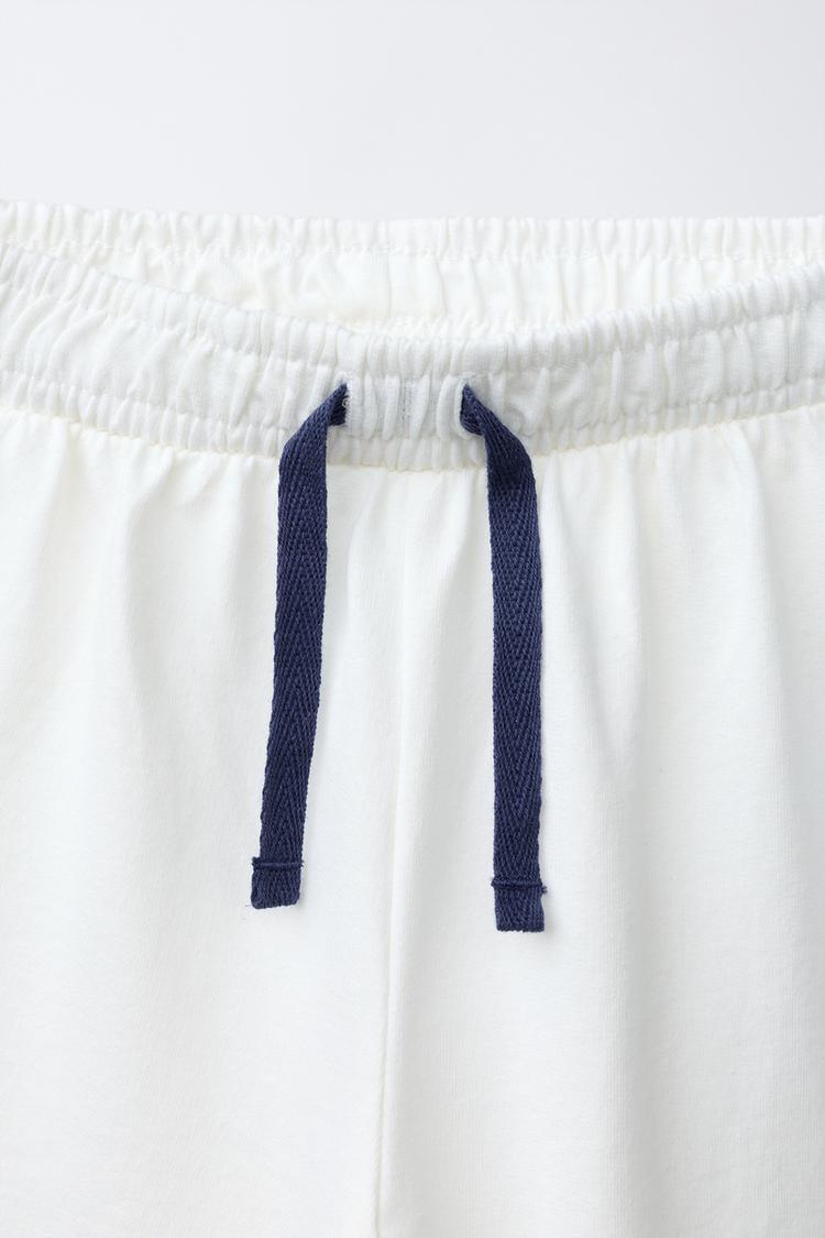 Пижама из двух предметов. Футболка с круглым вырезом и короткими рукавами. Отделка контрастного цвета. Бриджи с эластичным поясом и шнуровкой спереди. Накладной карман сзади. Принт PSG ®.