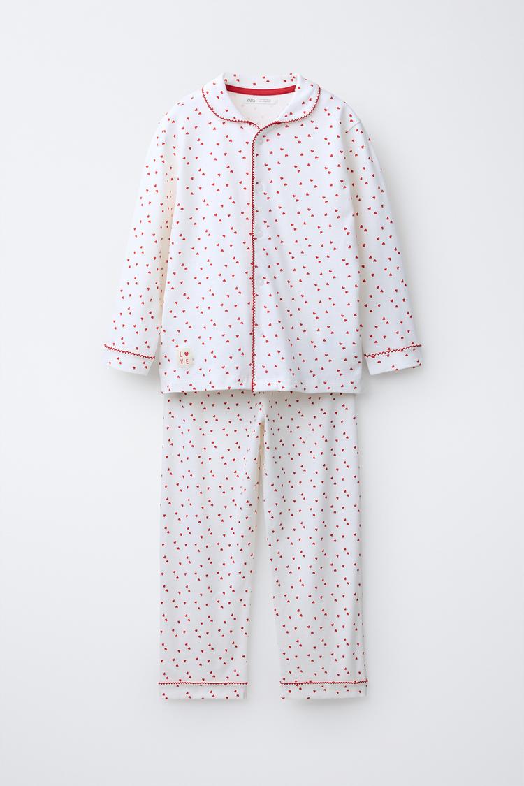 ZARA ПИЖАМА С ПРИНТОМ «СЕРДЦА», ЭКРЮ
