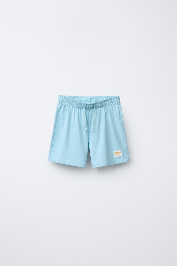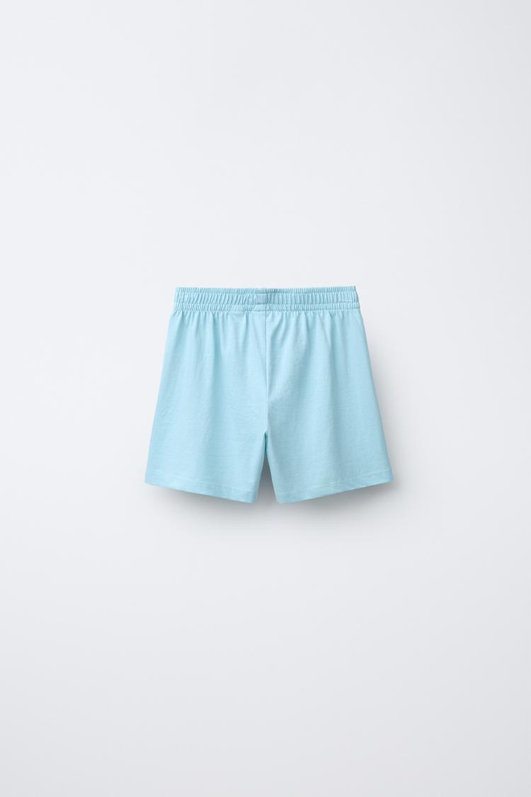 Пижама из двух частей. Футболка с круглым вырезом и короткими рукавами. Текст с рельефным принтом на груди и спине. Бермуды с эластичным поясом и декоративными шнурками спереди. Нашивка с этикеткой снизу.