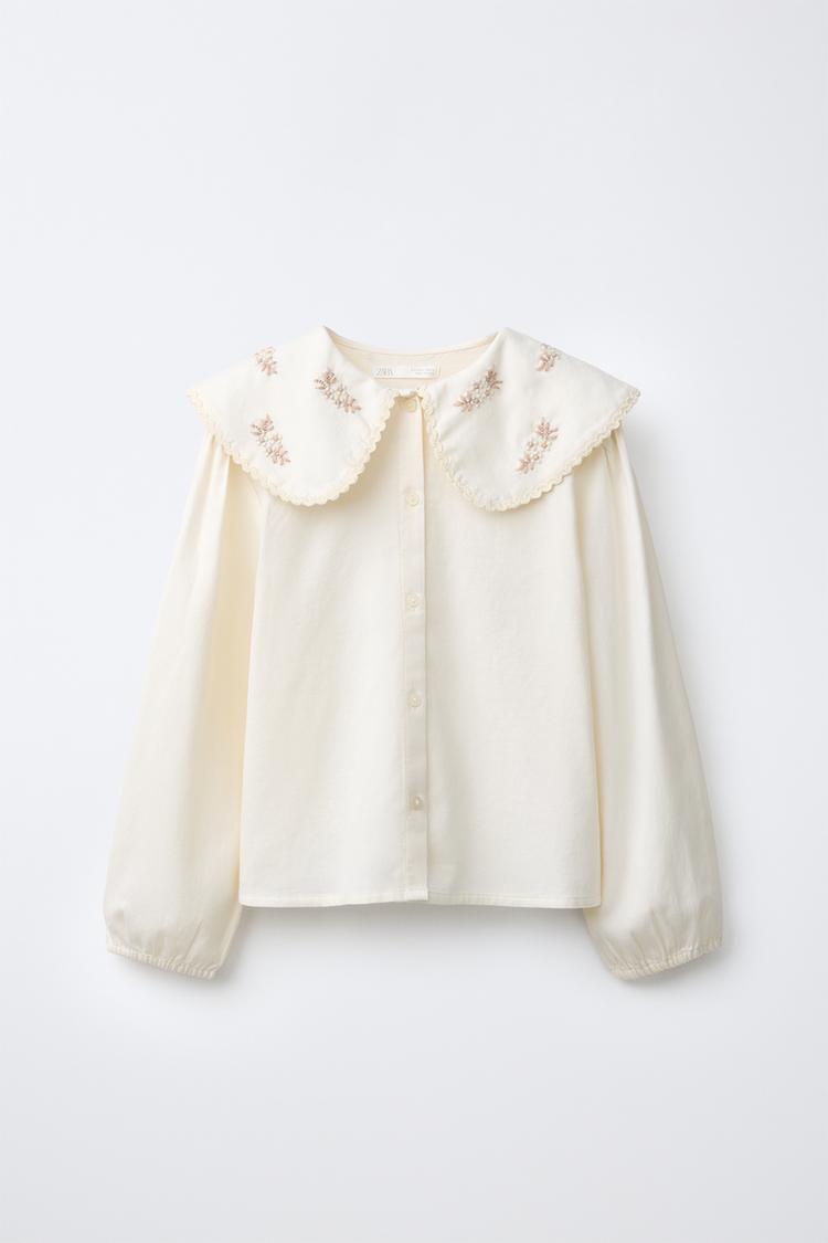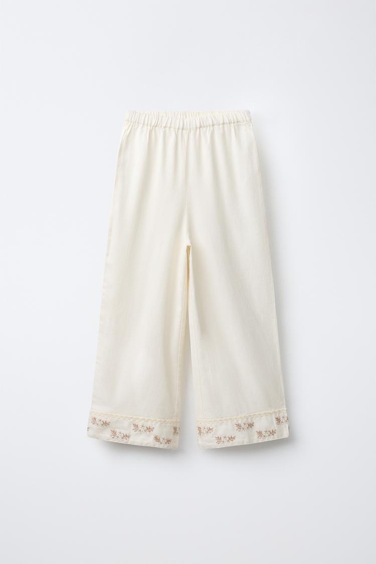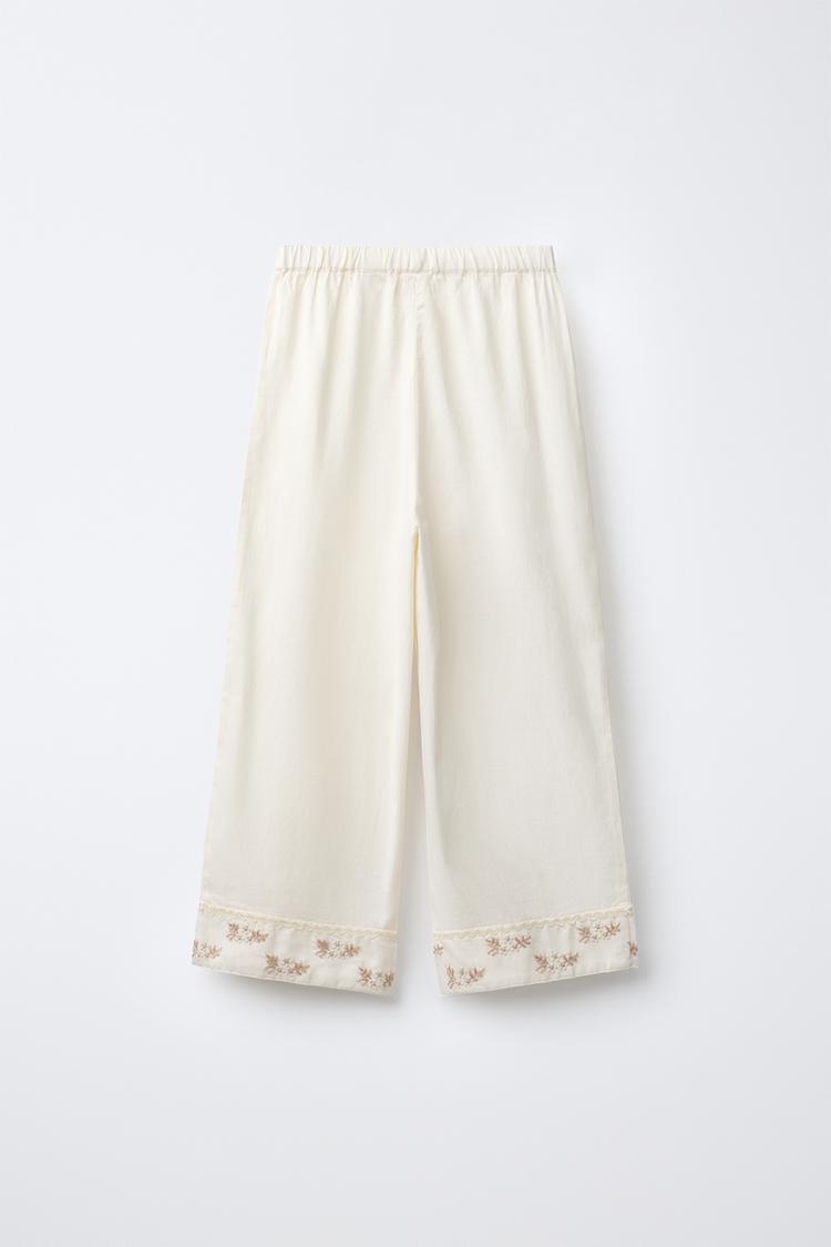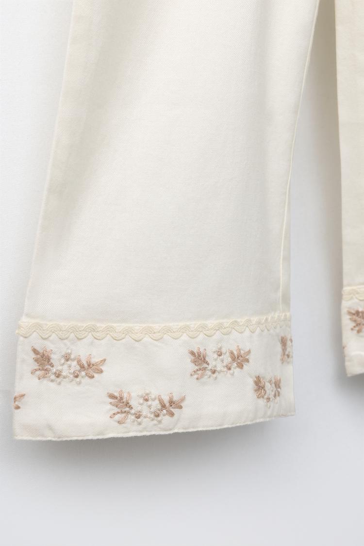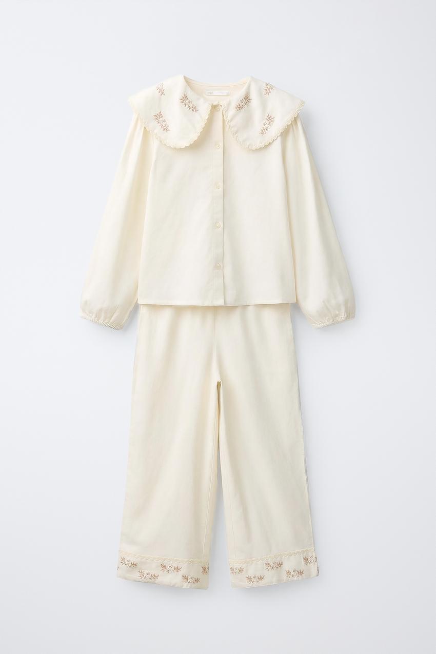 ZARA ПИЖАМА С ВЫШИТЫМИ ЦВЕТАМИ, ЭКРЮ