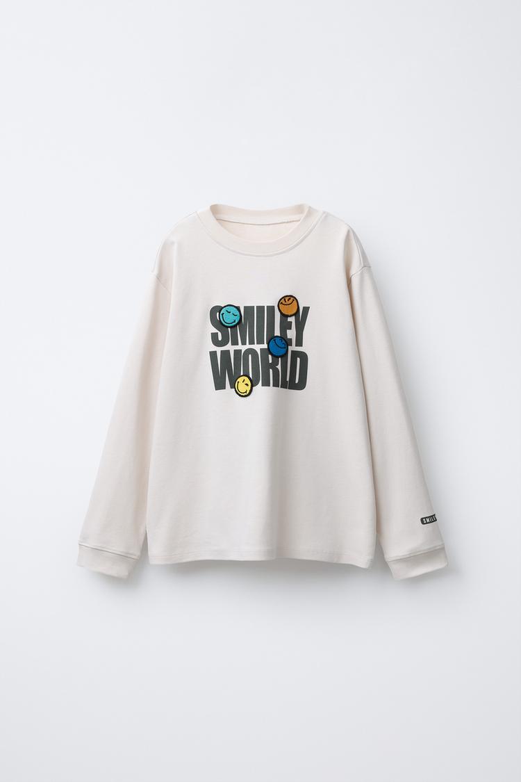 Пижама из двух предметов. Футболка с круглым вырезом и длинными рукавами. Брюки с эластичным поясом и манжетами. Принт SMILEYWORLD ®.