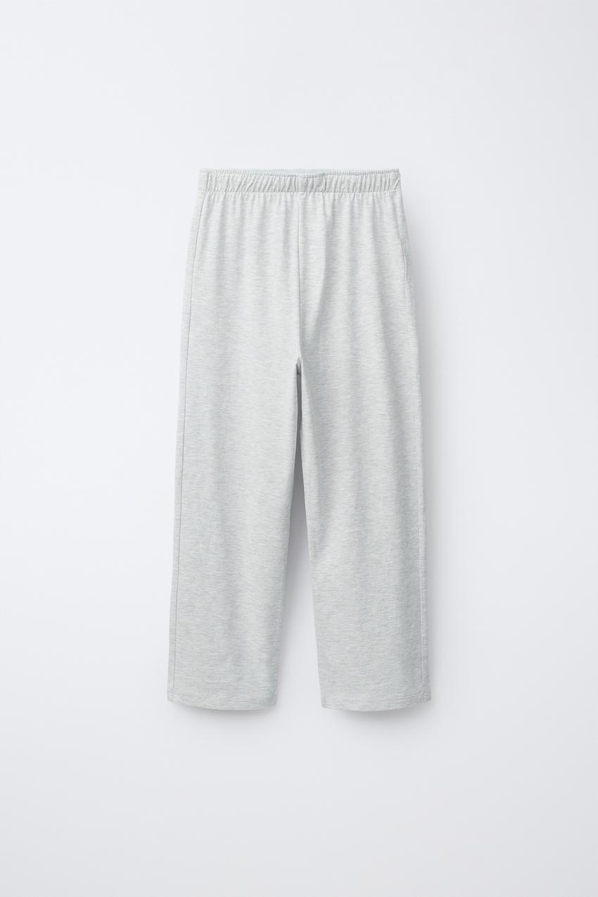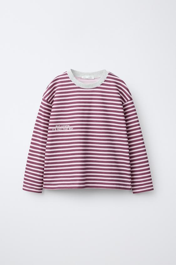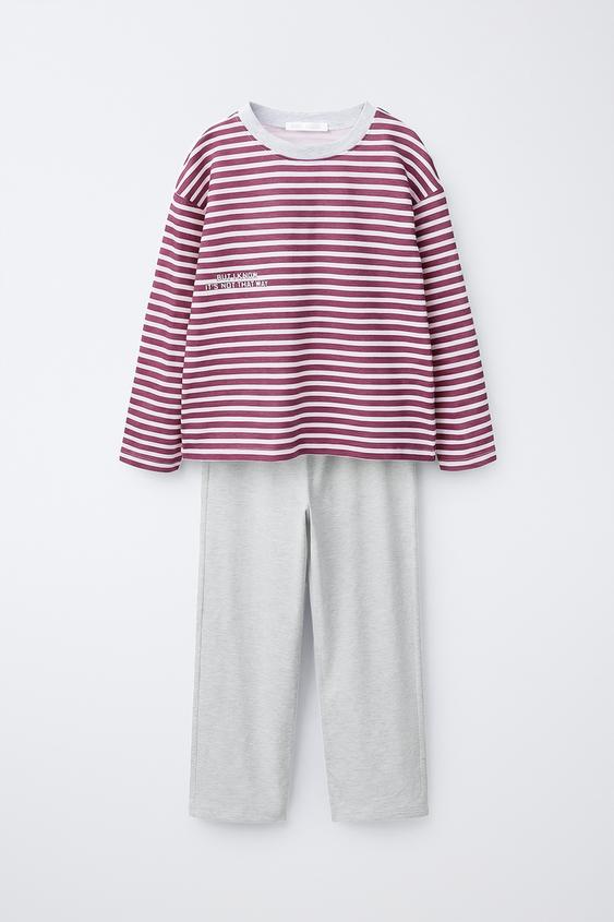 Пижама из двух предметов. Футболка с круглым вырезом и длинными рукавами. Принт в полоску и надпись спереди. Брюки с эластичным поясом.