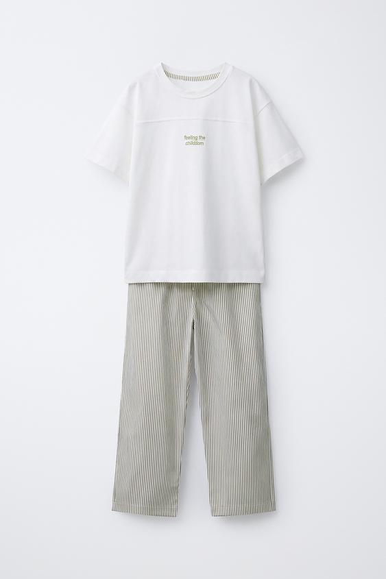ZARA ПИЖАМА В ПОЛОСКУ С ПРИНТОМ, ЗЕЛЕНЫЙ