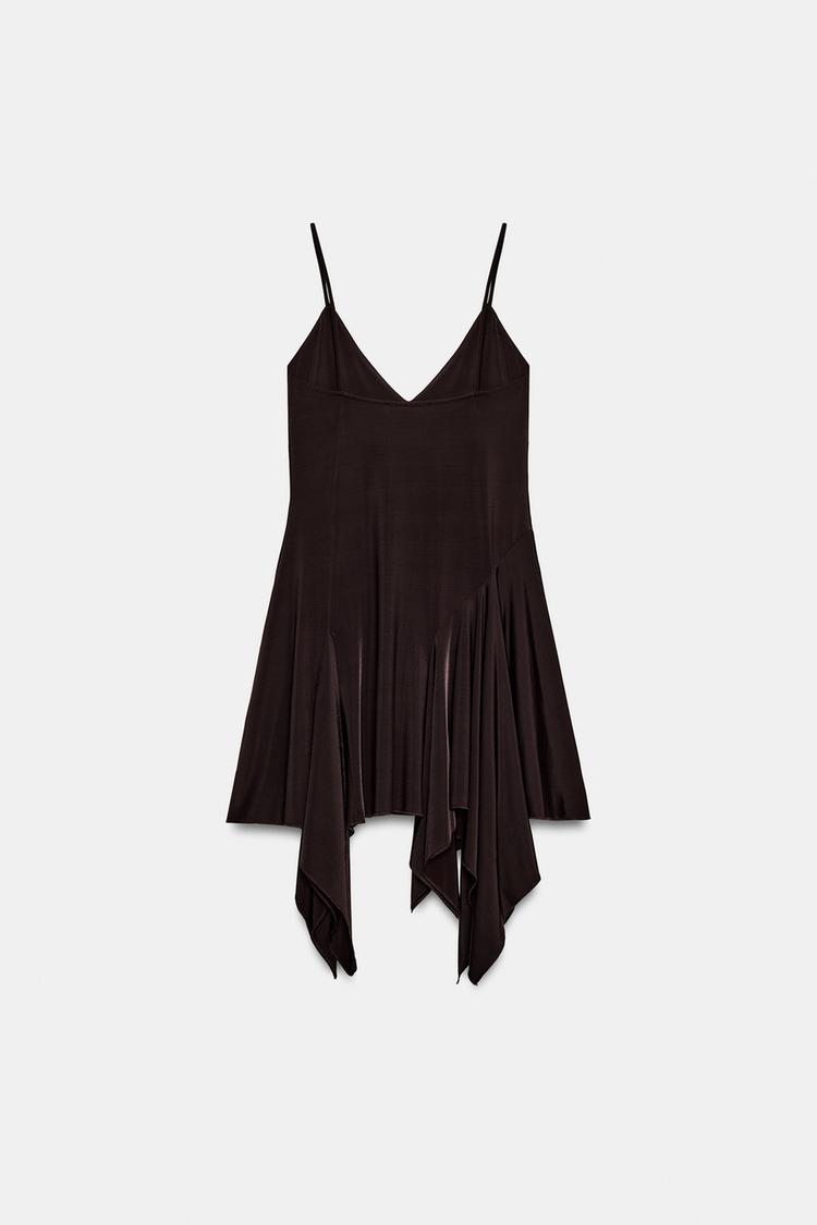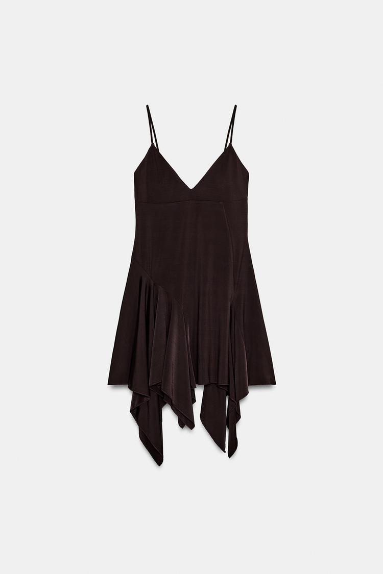 ZARA ПЛАТЬЕ АСИММЕТРИЧНОГО КРОЯ НА БРЕТЕЛЯХ, КОРИЧНЕВЫЙ