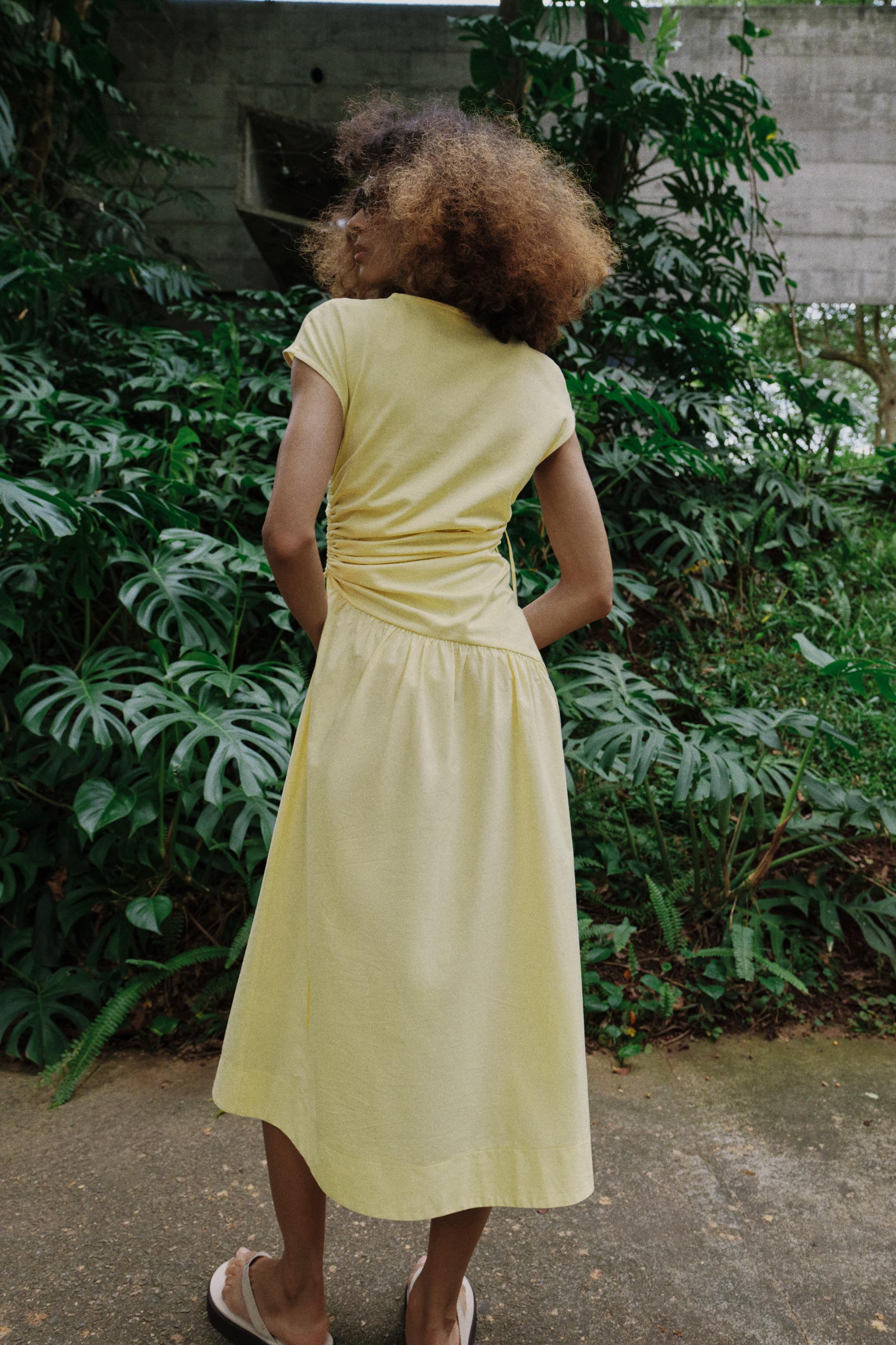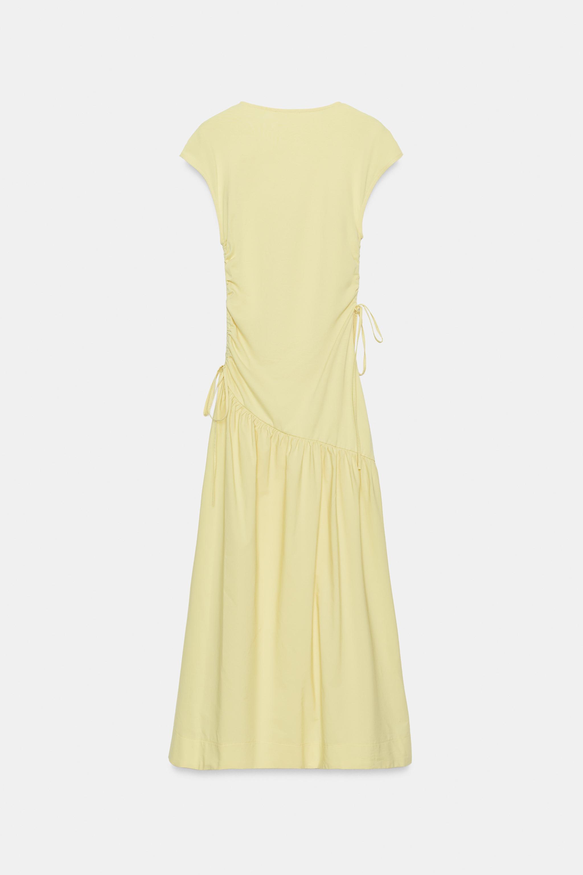 ZARA ПЛАТЬЕ АСИММЕТРИЧНОГО КРОЯ СО СБОРКАМИ, ЖЕЛТЫЙ