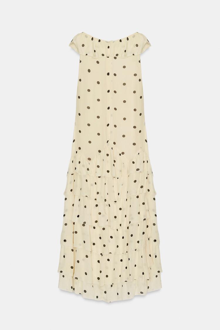 ZARA ПЛАТЬЕ АСИММЕТРИЧНОГО КРОЯ В ГОРОШЕК, ЭКРЮ/ЧЕРНЫЙ