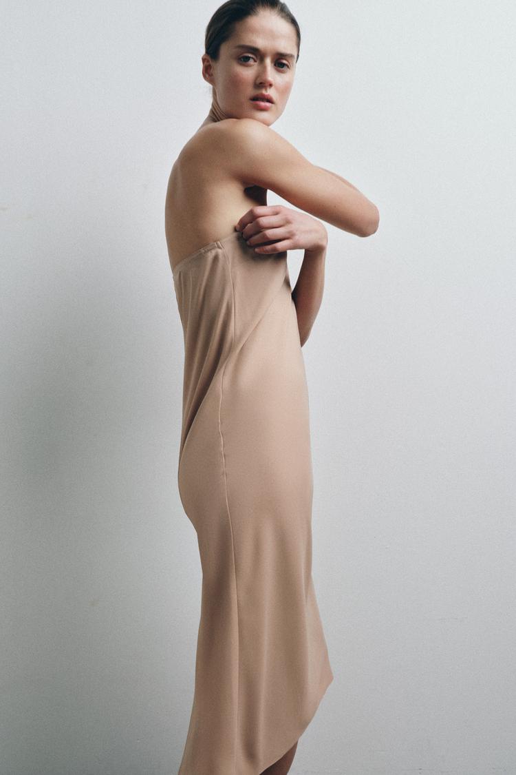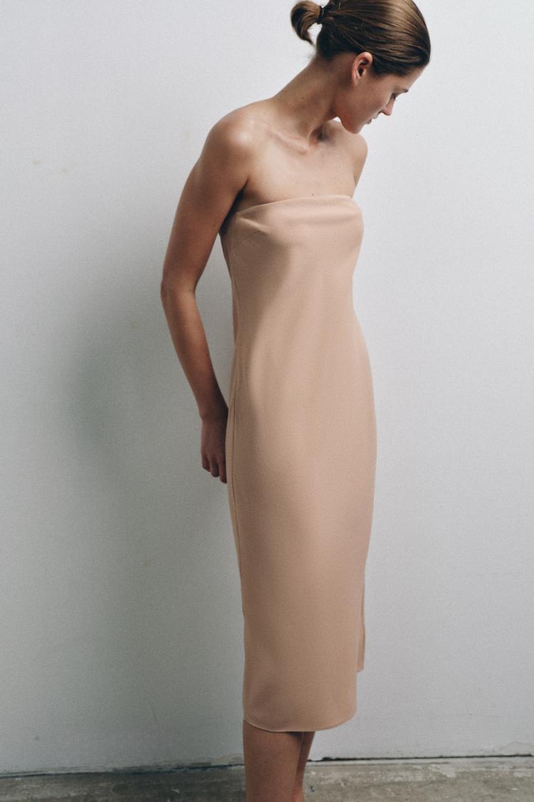 ZARA ПЛАТЬЕ-БАНДО НА ПОДКЛАДКЕ, ТЕЛЕСНО-РОЗОВЫЙ
