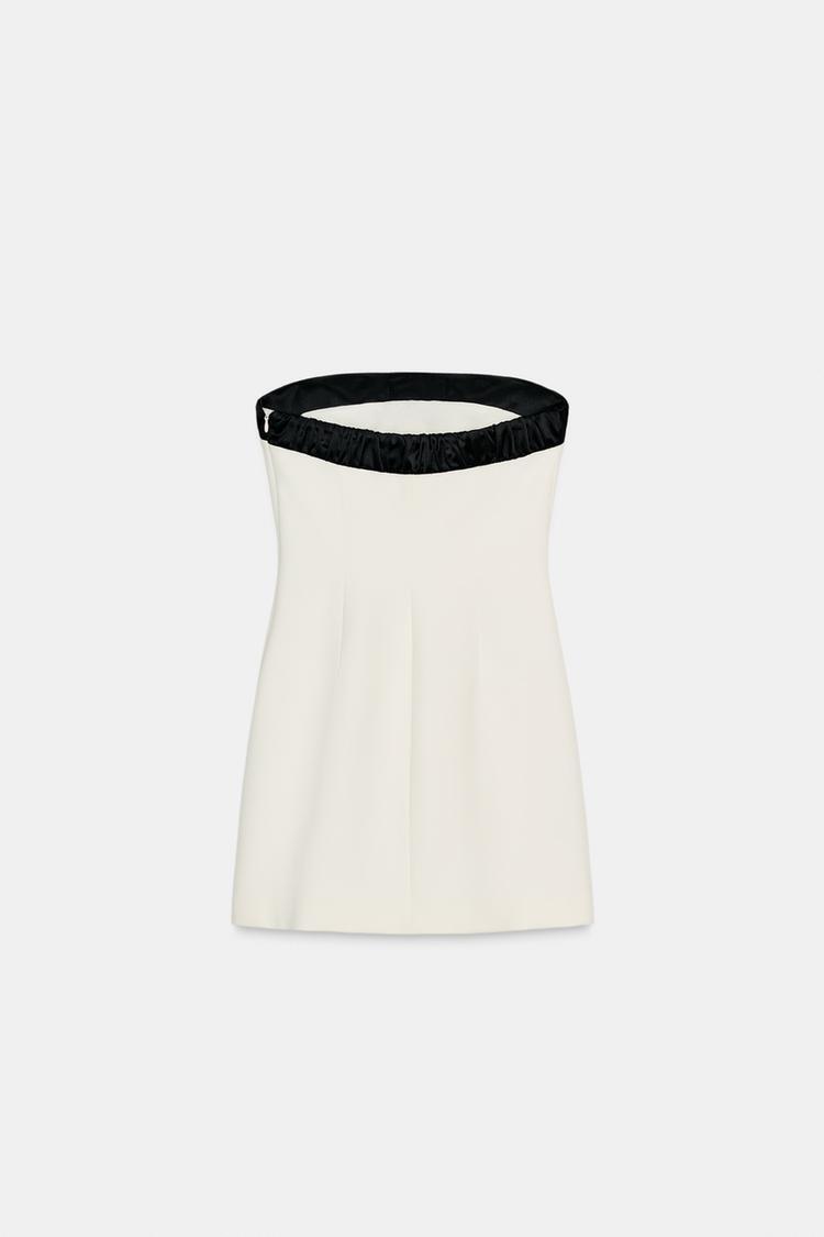ZARA ПЛАТЬЕ БЕЗ БРЕТЕЛЕЙ С БАНТОМ, ЖЕЛТОВАТО-БЕЛЫЙ