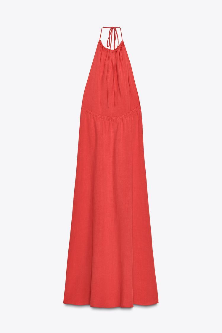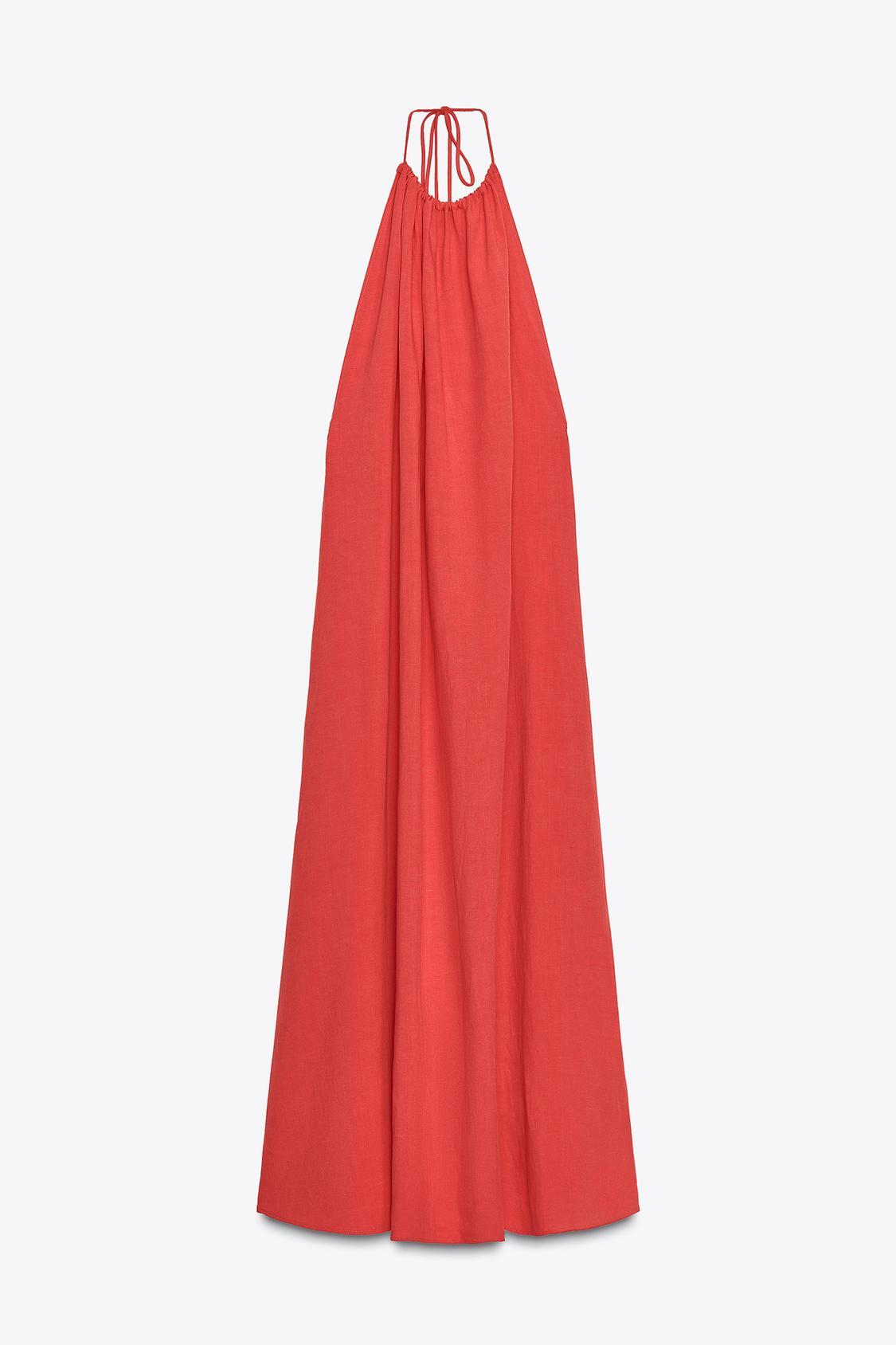 ZARA ПЛАТЬЕ ХАЛТЕР С ОТКРЫТОЙ СПИНОЙ, КОРАЛЛОВО-КРАСНЫЙ