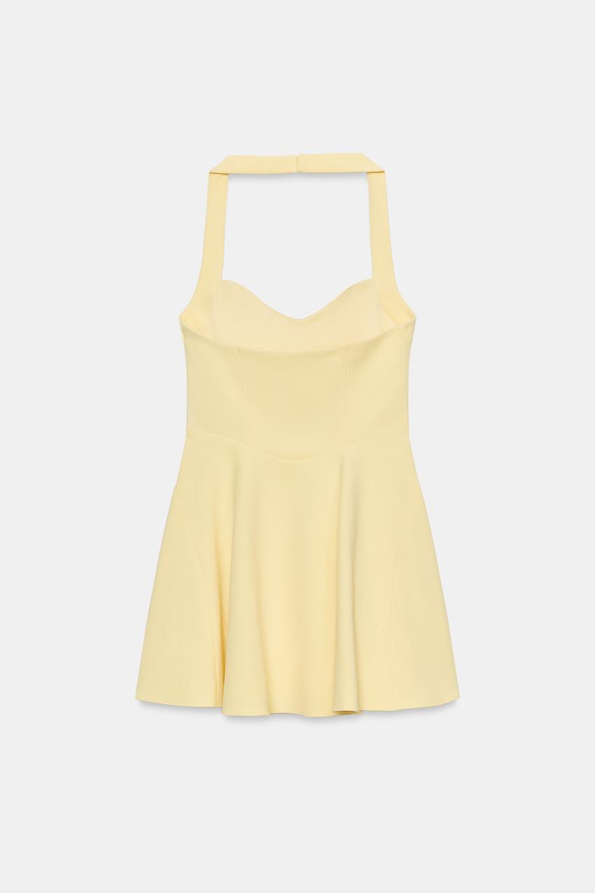ZARA ПЛАТЬЕ ХАЛТЕР С РАСКЛЕШЕННОЙ ЮБКОЙ, ЖЕЛТЫЙ