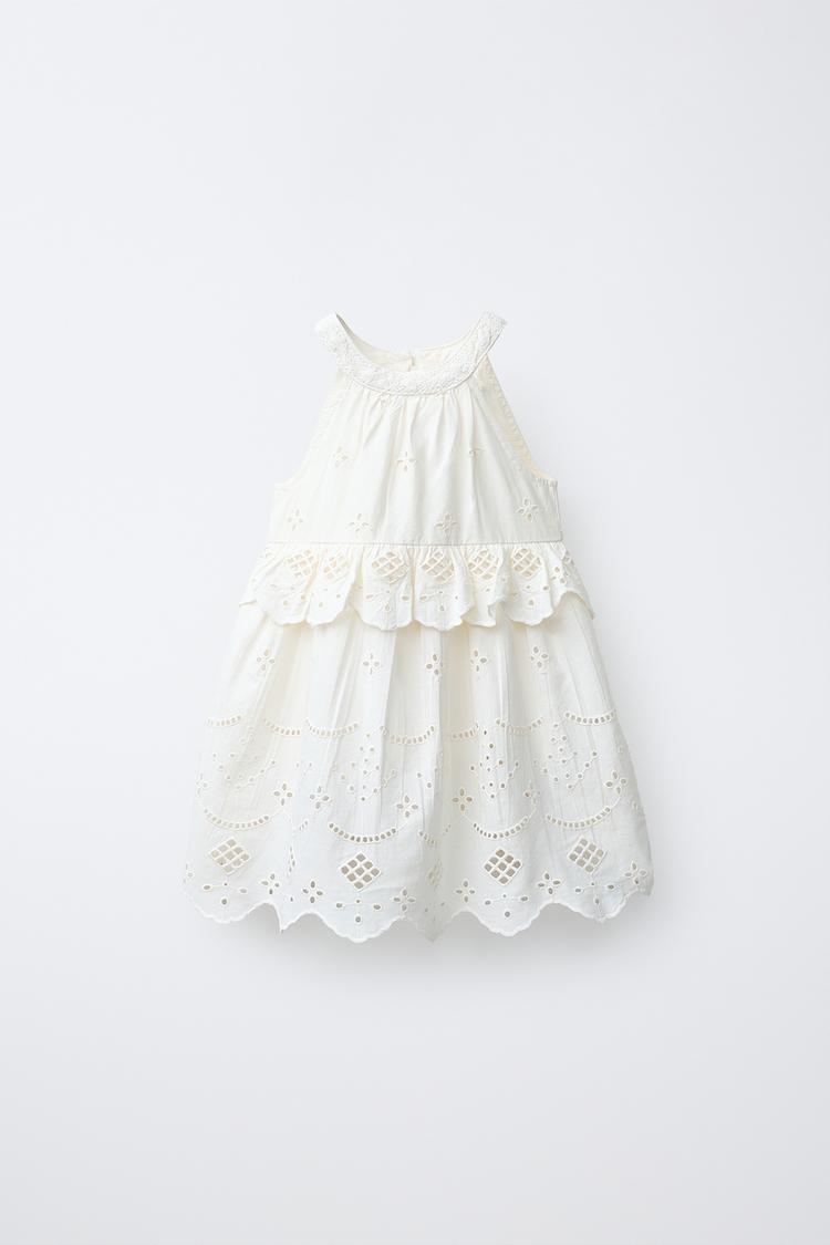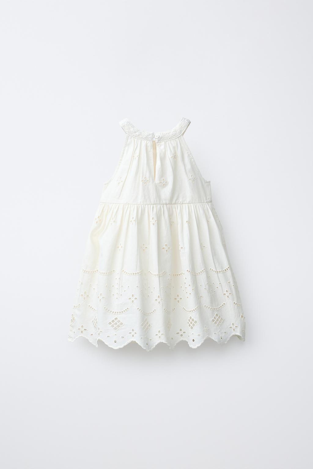 ZARA ПЛАТЬЕ ХАЛТЕР С ВЫШИВКОЙ, ЭКРЮ