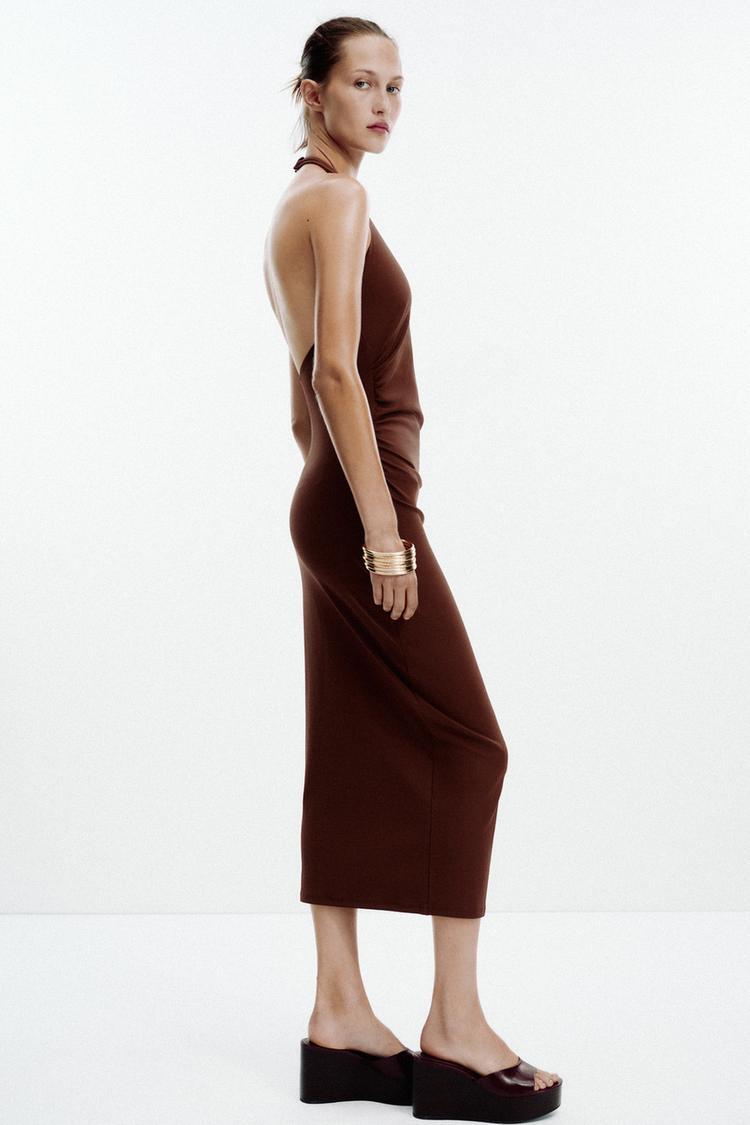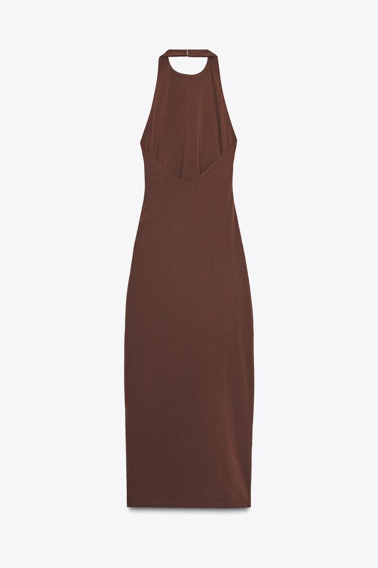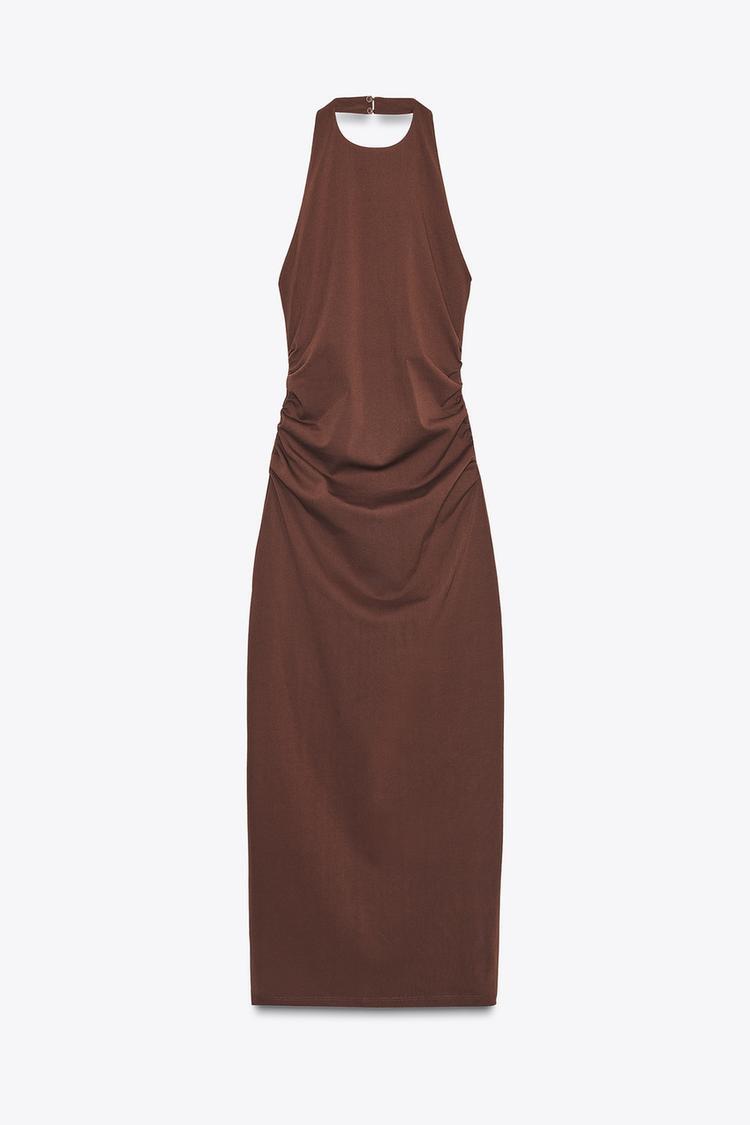 ZARA ПЛАТЬЕ ХАЛТЕР СО СБОРКАМИ, КОРИЧНЕВЫЙ
