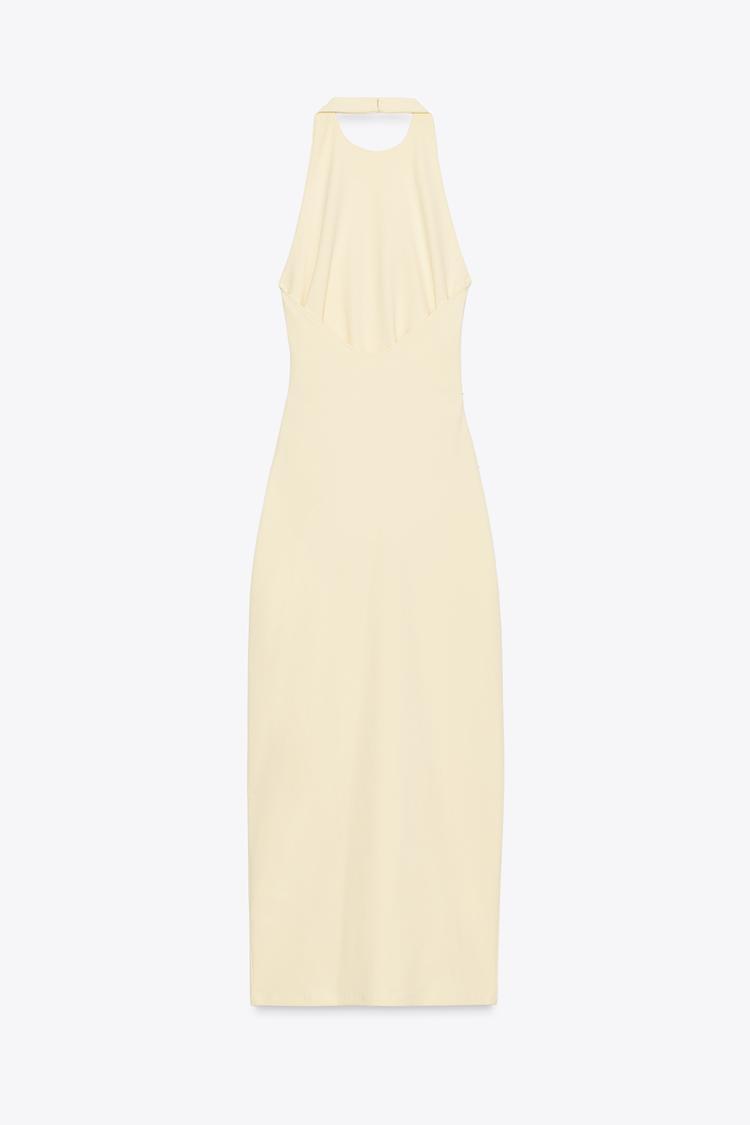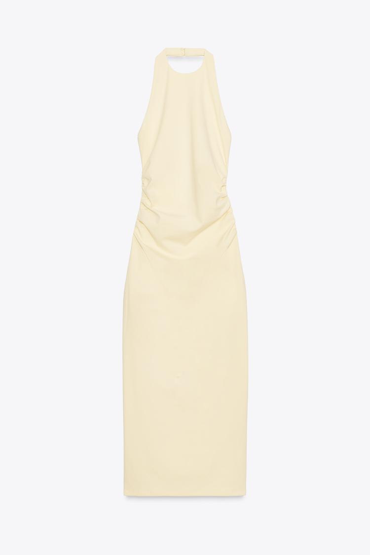 ZARA ПЛАТЬЕ ХАЛТЕР СО СБОРКАМИ, ЖЕЛТЫЙ