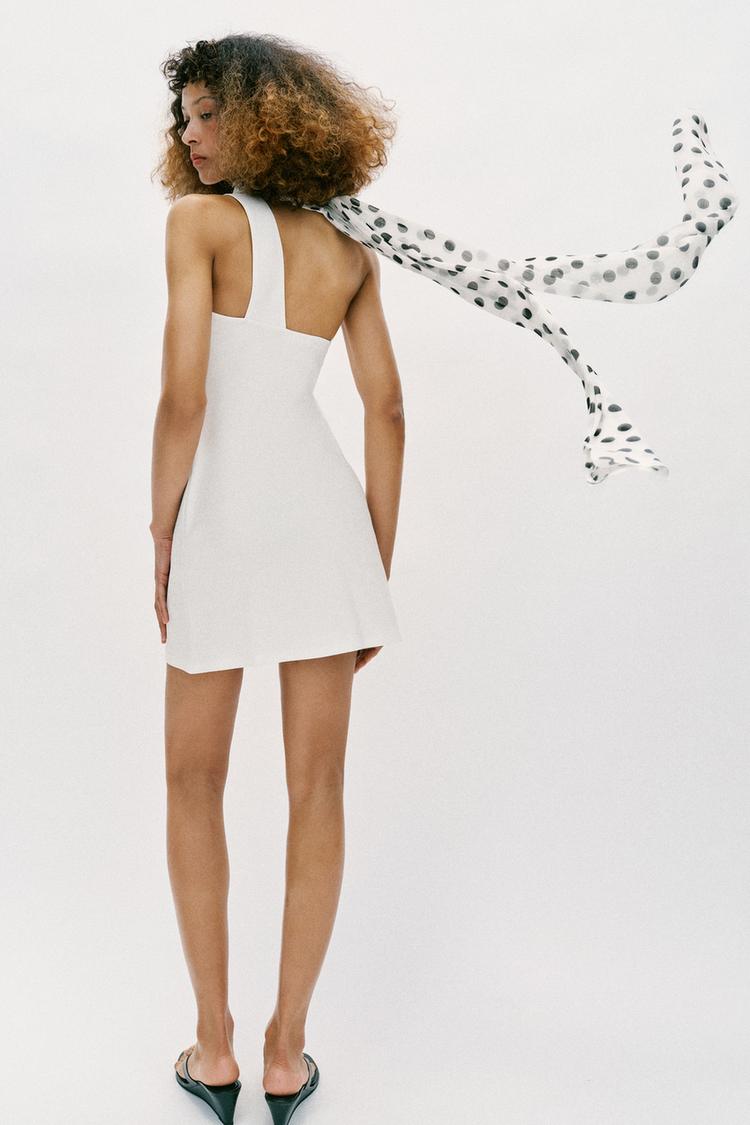 ZARA ПЛАТЬЕ ХАЛТЕР В ГОРОШЕК, БЕЛЫЙ