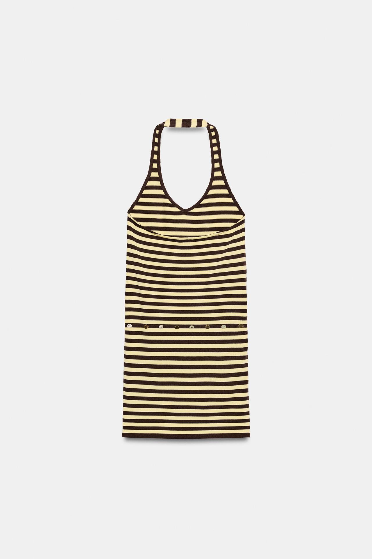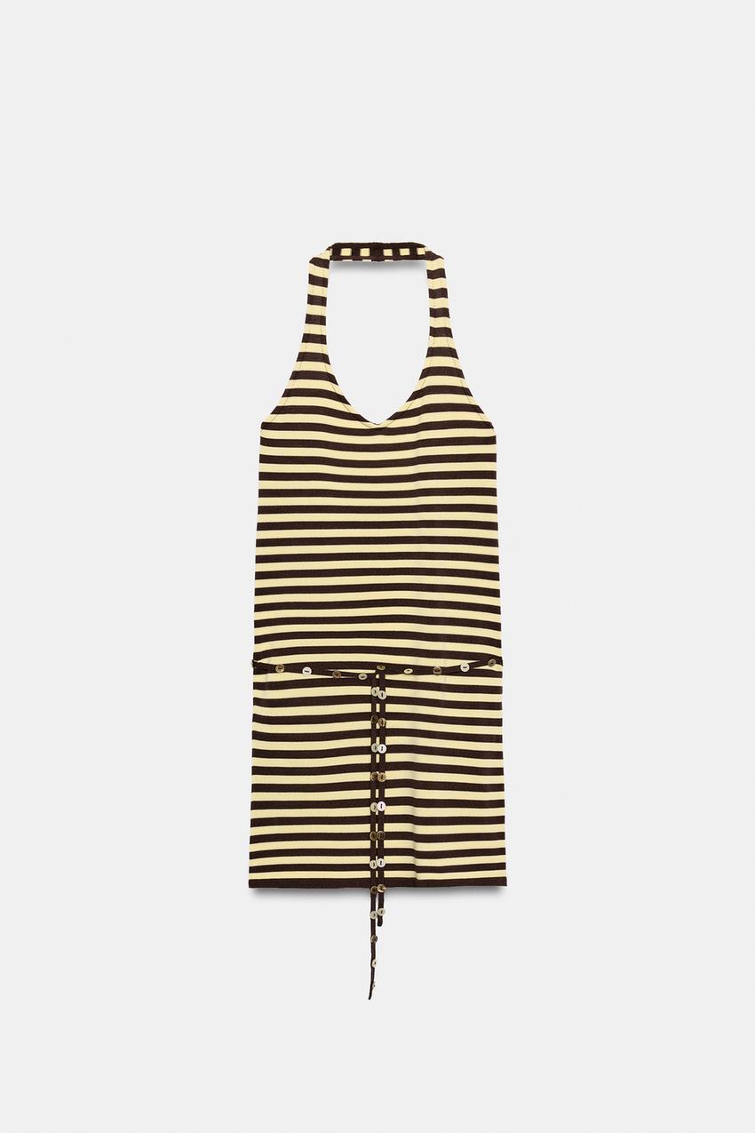 ZARA ПЛАТЬЕ ХАЛТЕР В ПОЛОСКУ С РЕМНЕМ, ПОЛОСКИ
