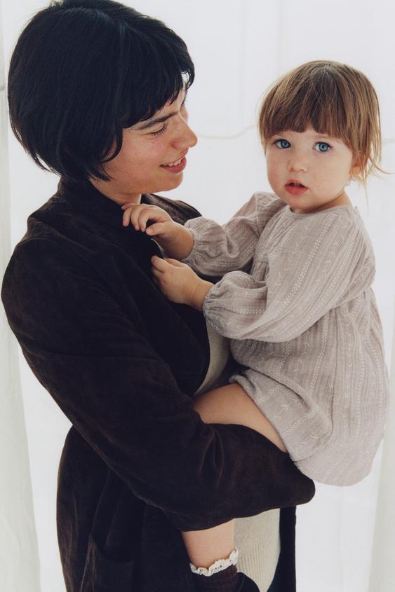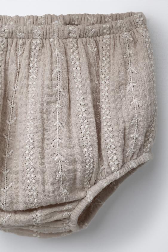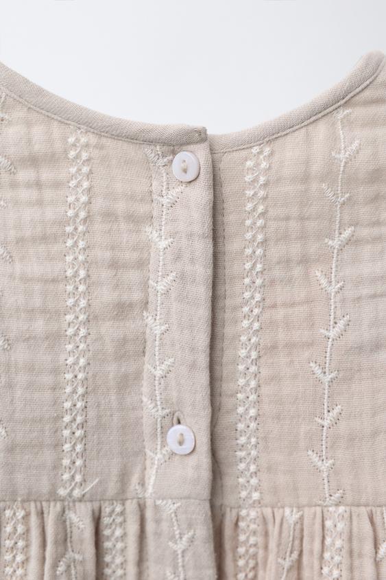 ZARA ПЛАТЬЕ И ТРУСИКИ ИЗ ТКАНИ БАМБУЛА С ВЫШИВКОЙ, ЦВЕТ ВЕРБЛЮЖЬЕЙ ШЕРСТИ
