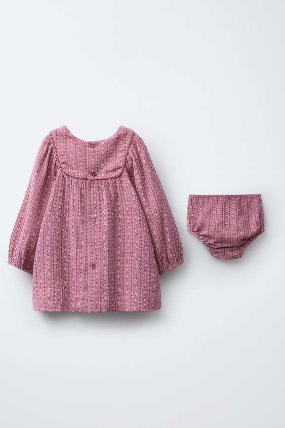 ZARA ПЛАТЬЕ И ТРУСИКИ С ЦВЕТОЧНЫМ РИСУНКОМ, ТЕМНО-РОЗОВЫЙ